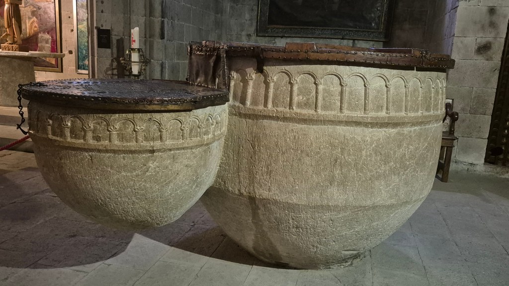 El horario de lunes a sábado es de 10:00 a 20:00 horas. Domingos de 10:00 a 18:00 horas. Estudiantes y jubilados 9€. La entrada general10€. (Los profesores no tenemos descuentos). No cogimos audioguia porque teníamos solo 1 hora para ver las dos catedrales.