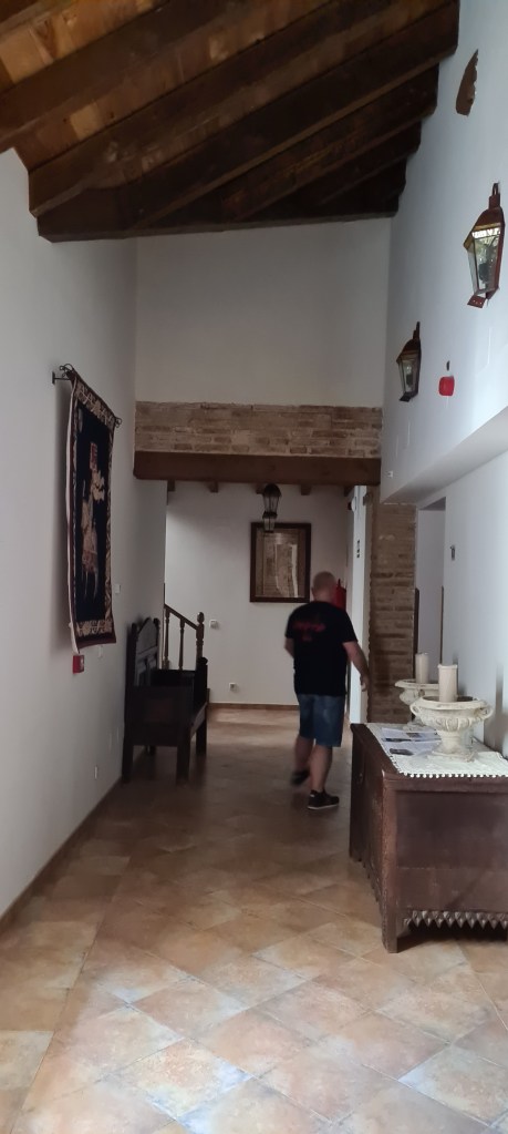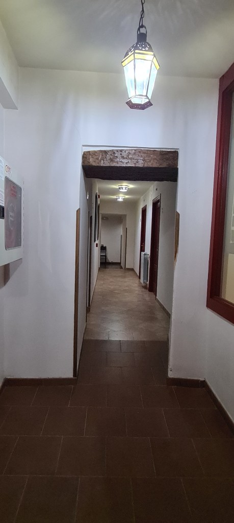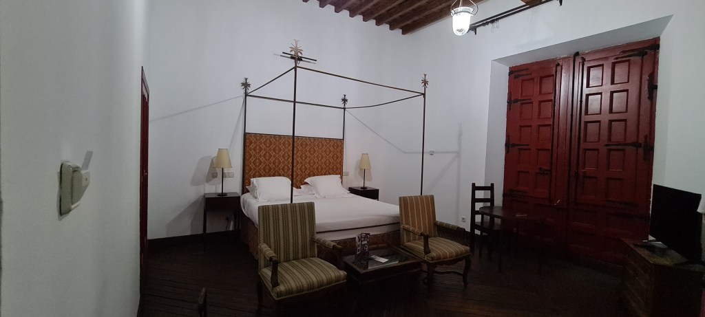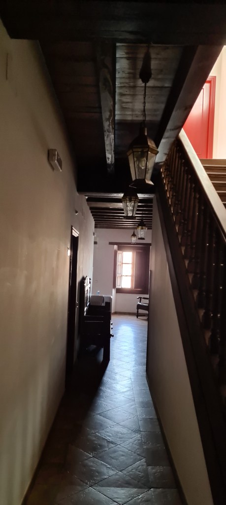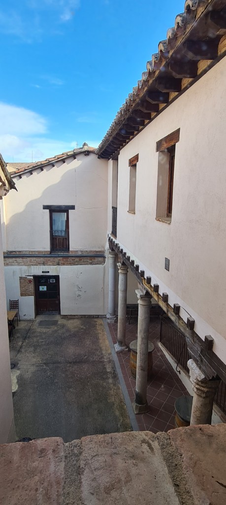 Cuando entras se ven distintas dependencias, cafetería restaurante, patio castellano, escaleras que llevan a las habitaciones que merecen algunas fotos.