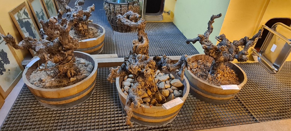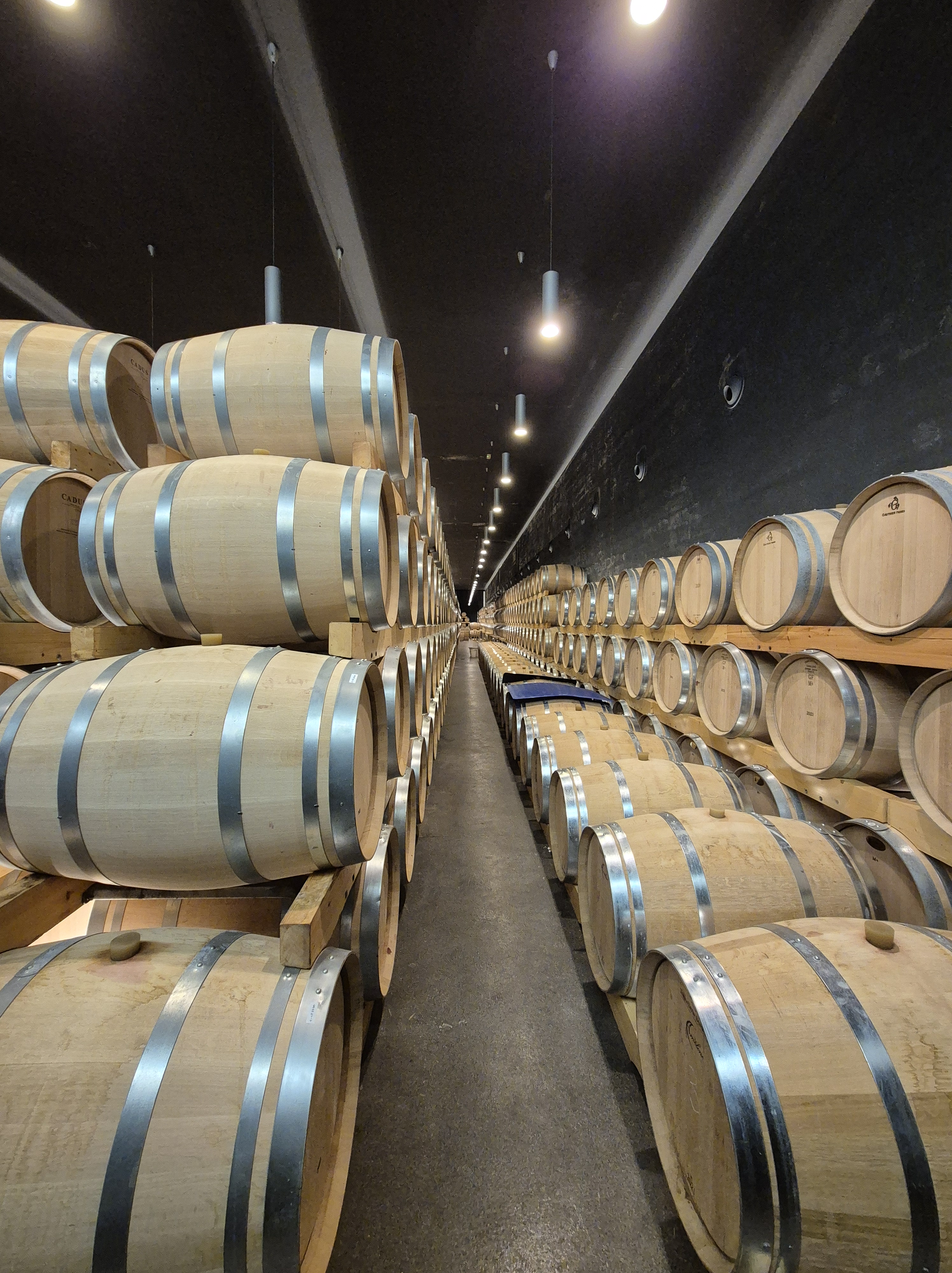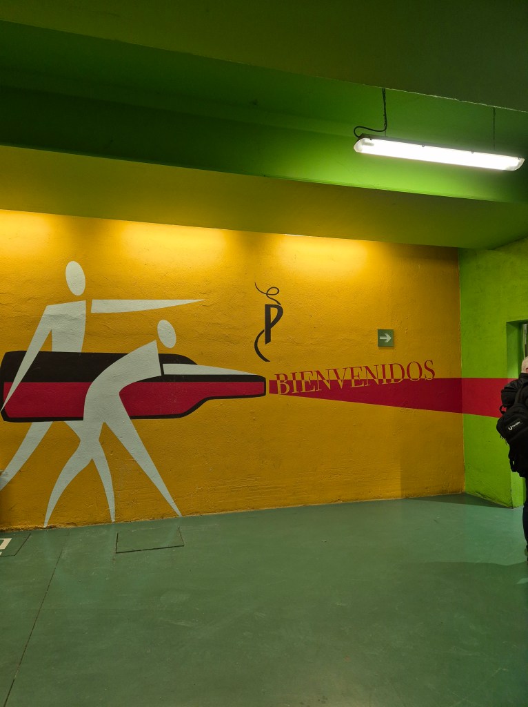 En el principio de la visita hay mucho ruído, donde están todas las botellas con las nuevas etiquetas de los diferentes vinos. (Personas que no están en la visita hacen mucho ruído… ) hasta que vamos a la zona de depositos y de barricas.