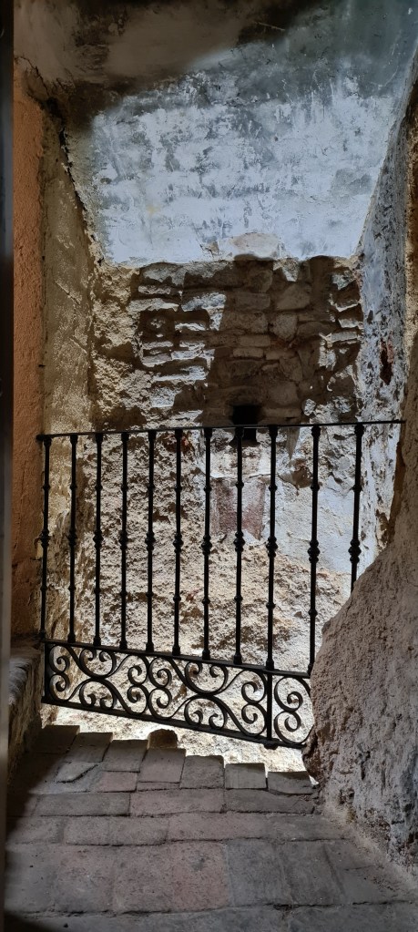 El museo ocupa lo que fue una iglesia románica, de la que solo se conserva el ábside, el resto del edificio es del siglo XVI. El museo tiene una colección de arte sacro de objetos que pertenecieron a las iglesias que hubo en Atienza. Además cuenta con una colección de orfebrería y arqueología, con piezas de toda la comarca de la Prehistoria y Edad Antigua. Subimos al Coro Alto para tener una visión general… ¡me encanta poder acceder a esos rincones que normalmente están cerrados!