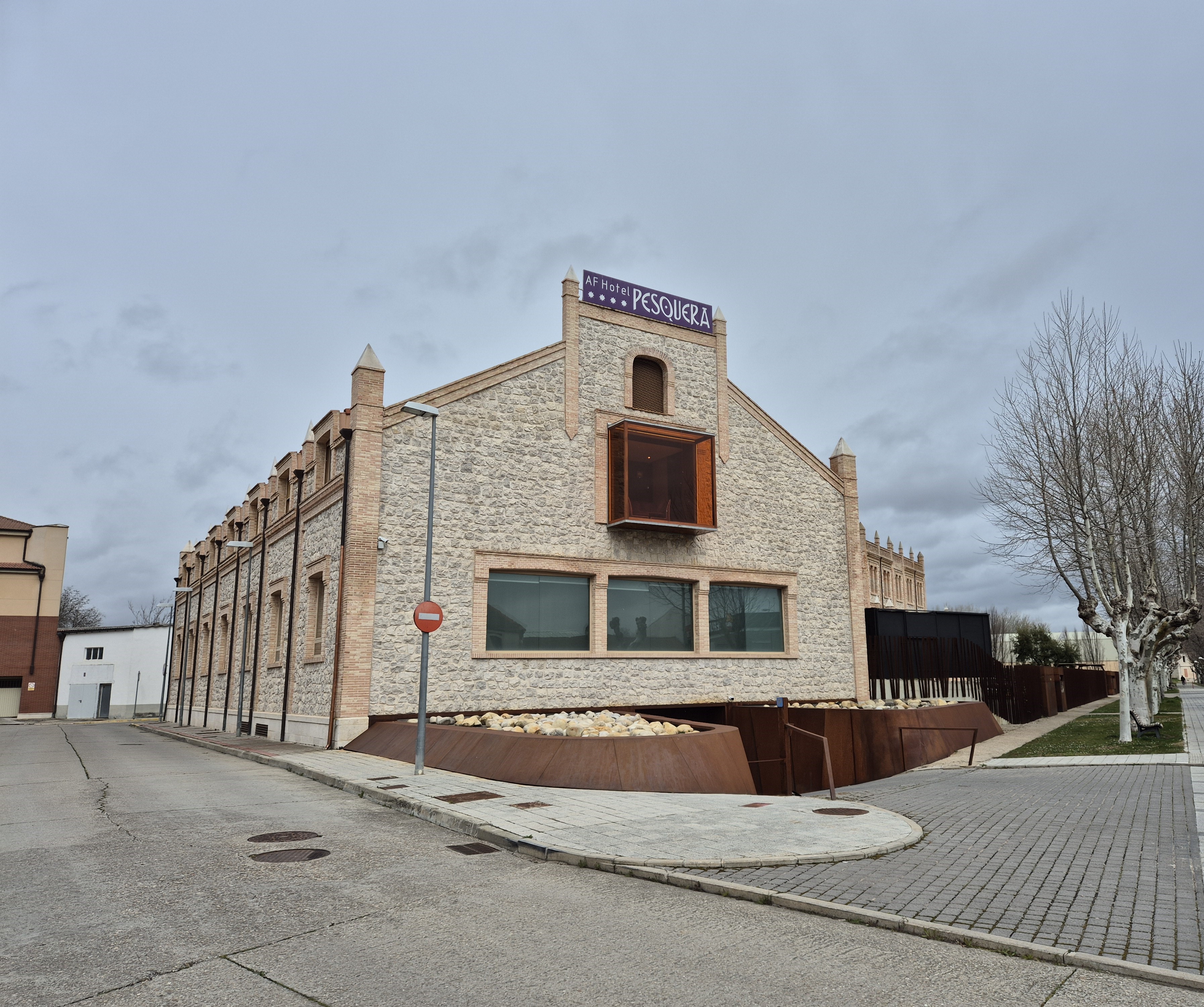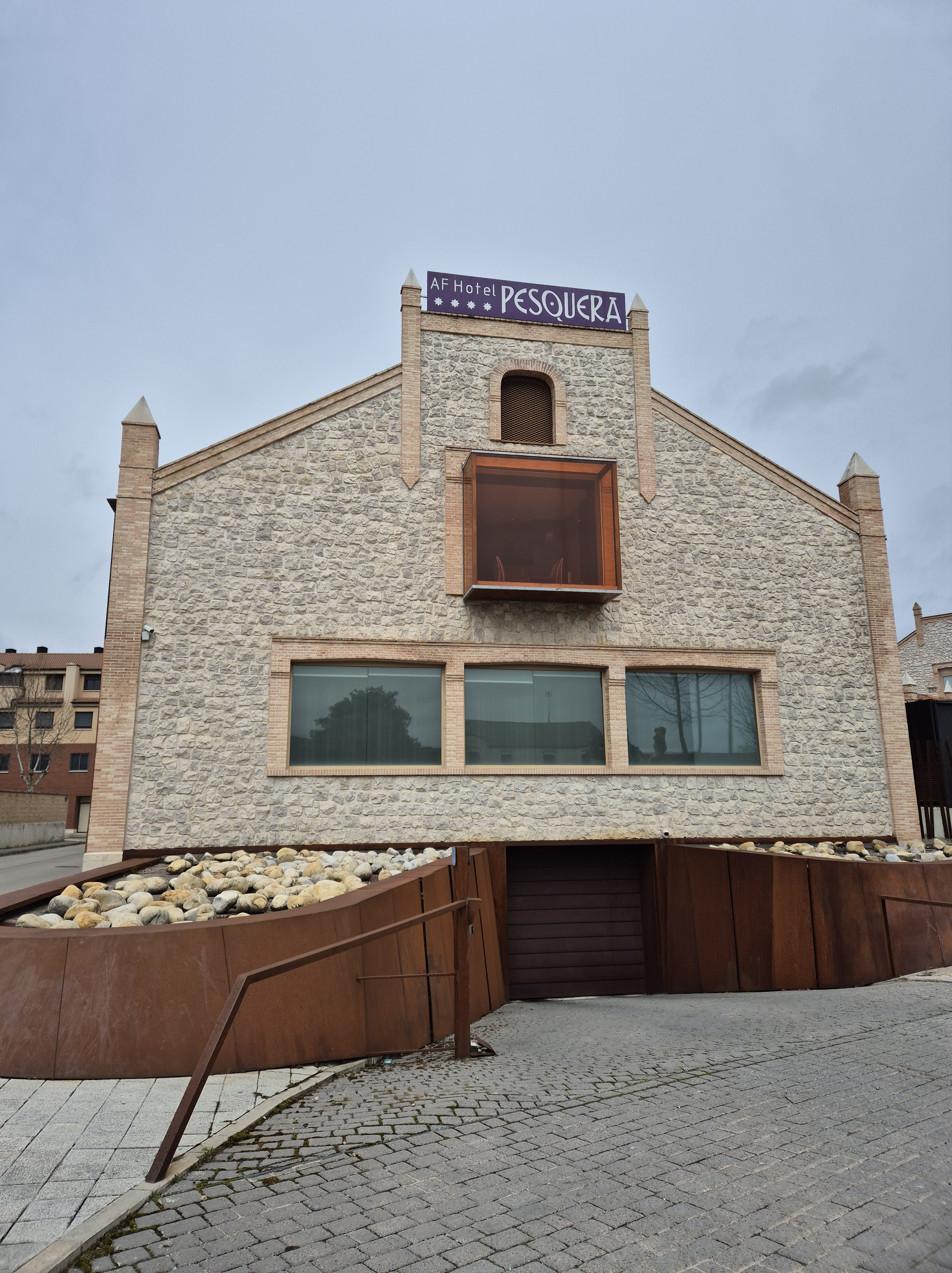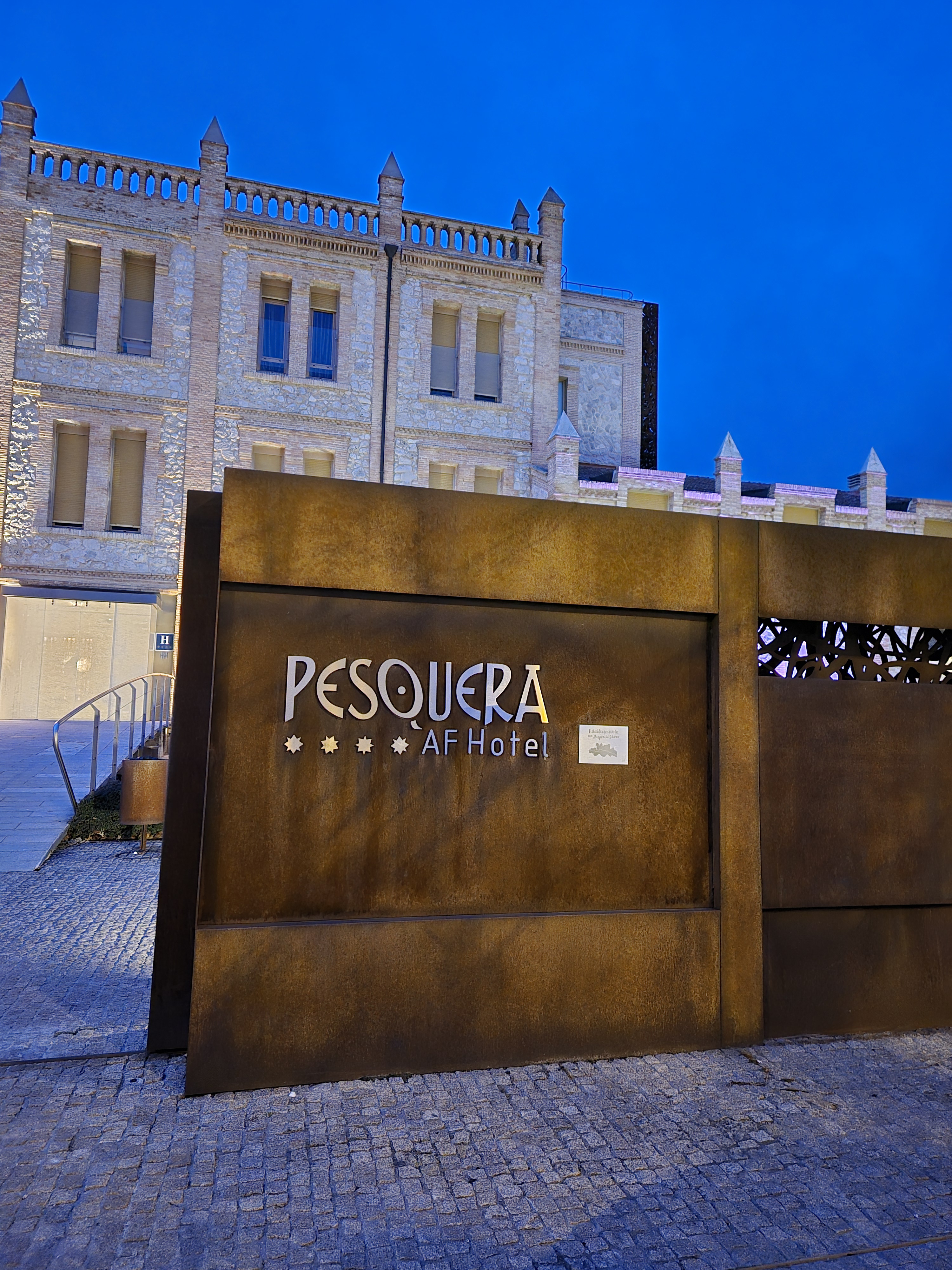 El alojamiento que reservamos fue Pesquera AF Hotel. Se encuentra a los pies del Castillo. Está construído en una antigua harinera de 1922, rodeado de muchas bodegas. (Pesquera tiene su propio vino también).