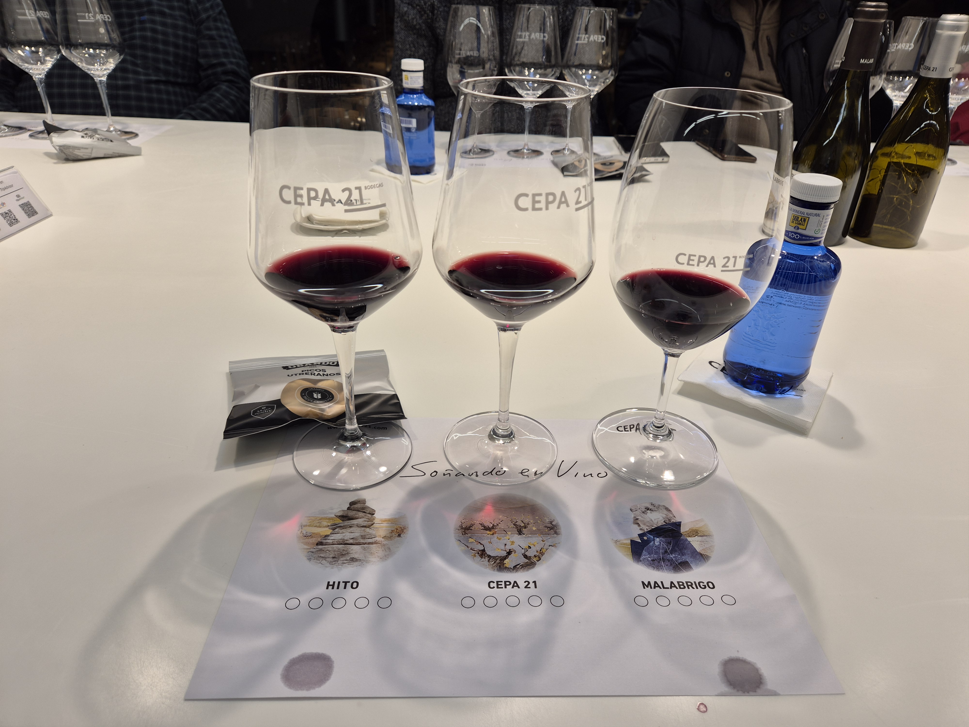 Unos 40 minutos más o menos y nos vamos a «la cata», que consiste en probar los tres vinos más íconicos de Cepa 21: