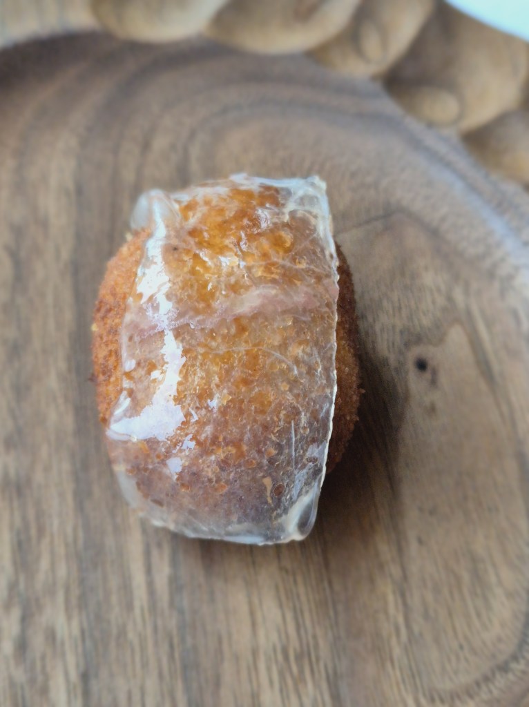 Desayuno también incluído, café y tostadas de pan con aceite. Nos dan una manzana para nuestro segundo día de Camino.