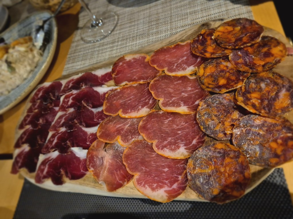 Donde sí que cenamos las dos noches de nuestra estancia fue en su taberna La Perla, también abierta para las personas del pueblo. Vino de la zona por supuesto y unas ricas raciones para cuatro, ¡cenas estupendas!