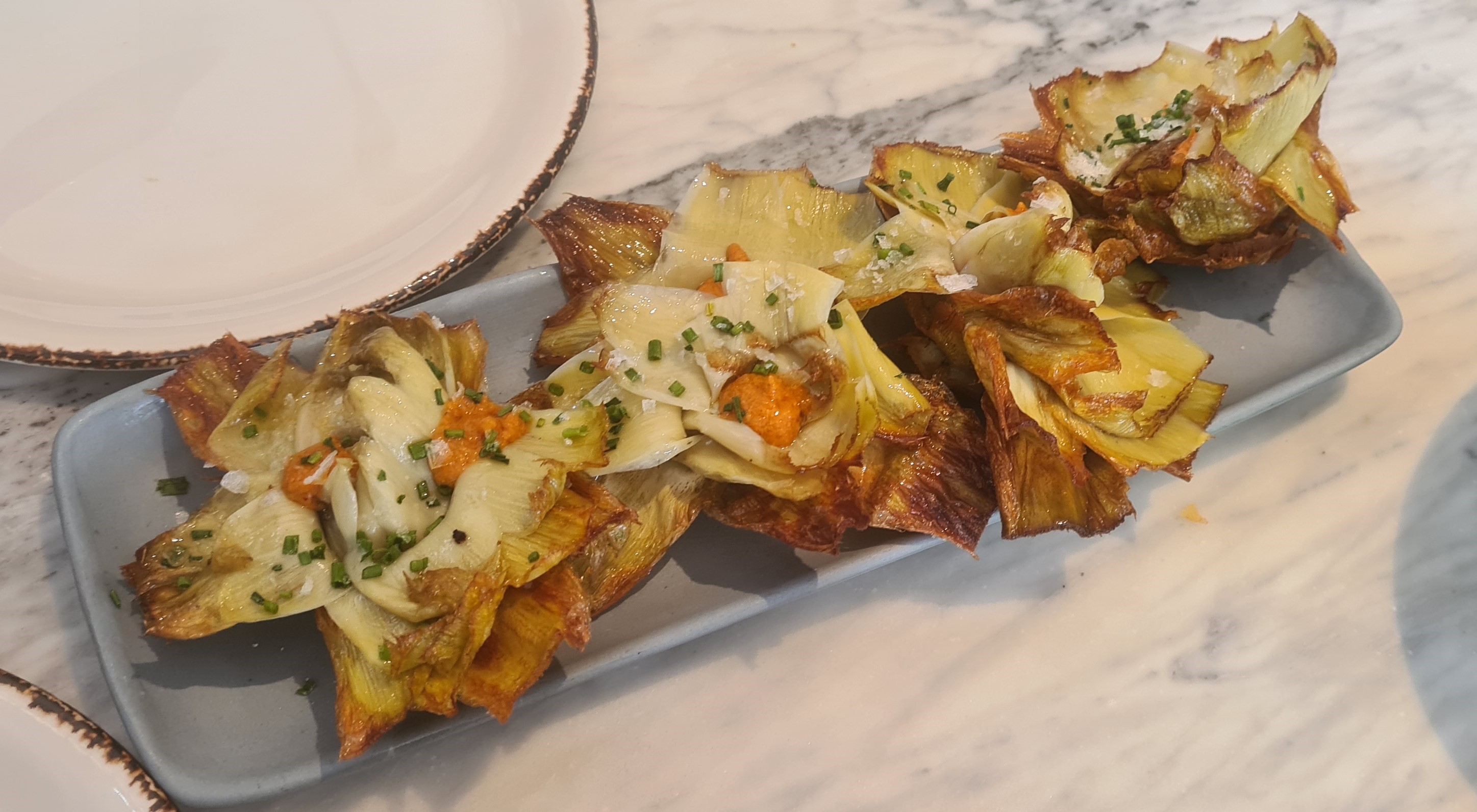 Pero había llegado el momento de cenar. El menú es de 39€ sin bebida. Incluye 3 tapas por persona, un segundo y un postre. Bebidas y cafés aparte.