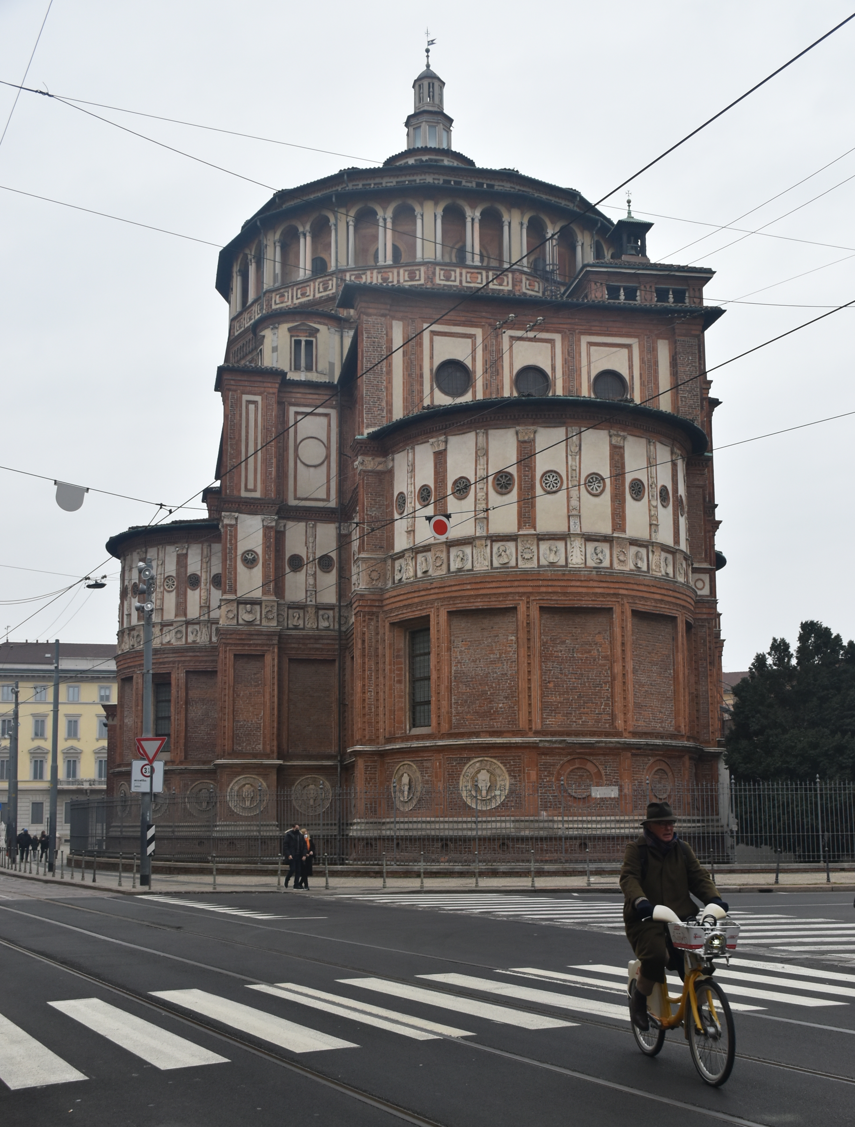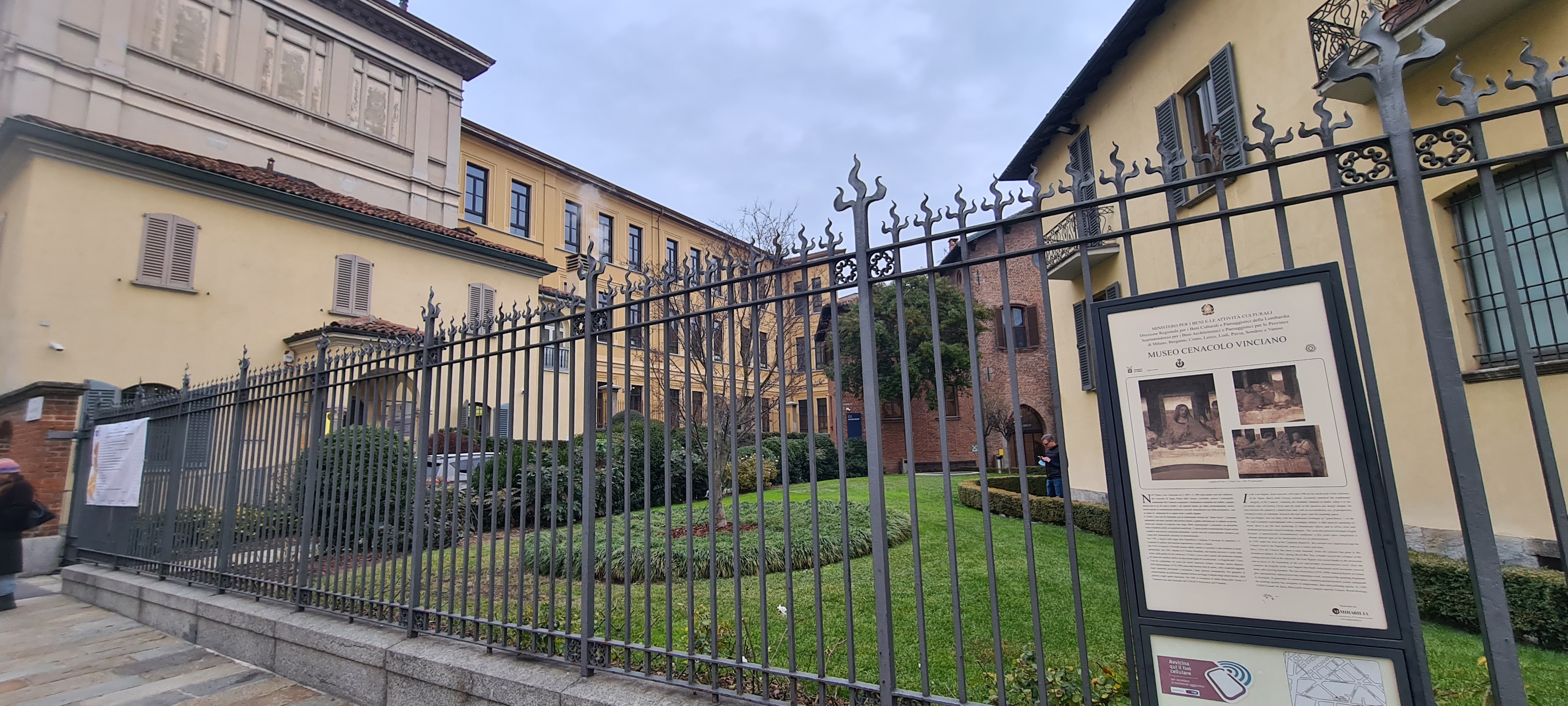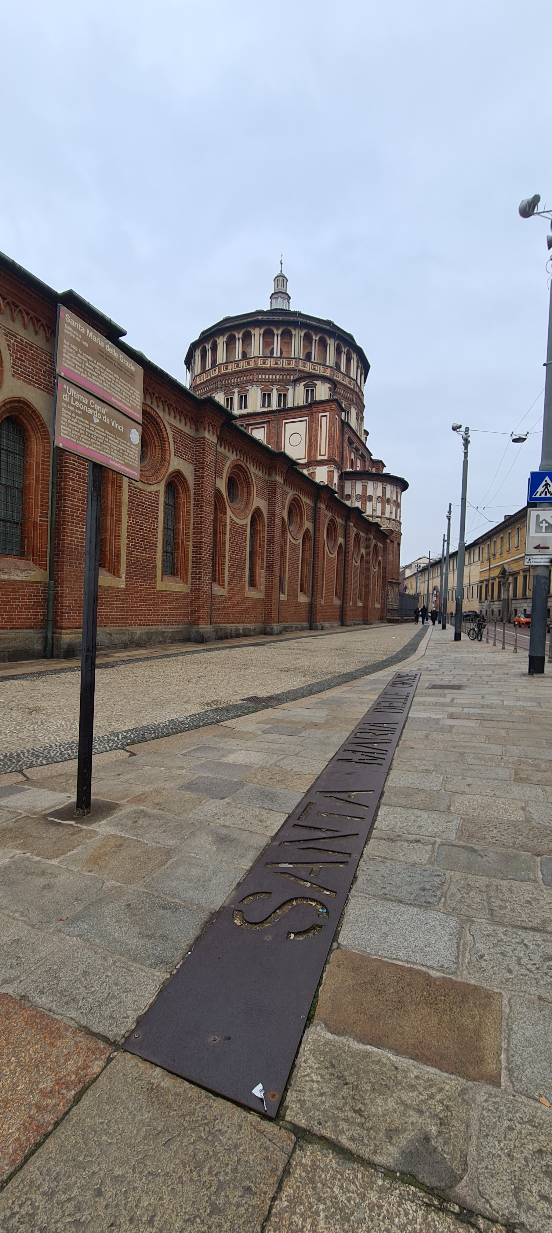 Y enseguida vamos viendo el ábside de la iglesia del Monasterio Santa María delle Grazzie. Nos aceleramos. Hemos llegado un poco pronto. Es IMPRESCINDIBLE reservar la visita online. Os dejo el enlace de la página oficial cenacolovinciano.