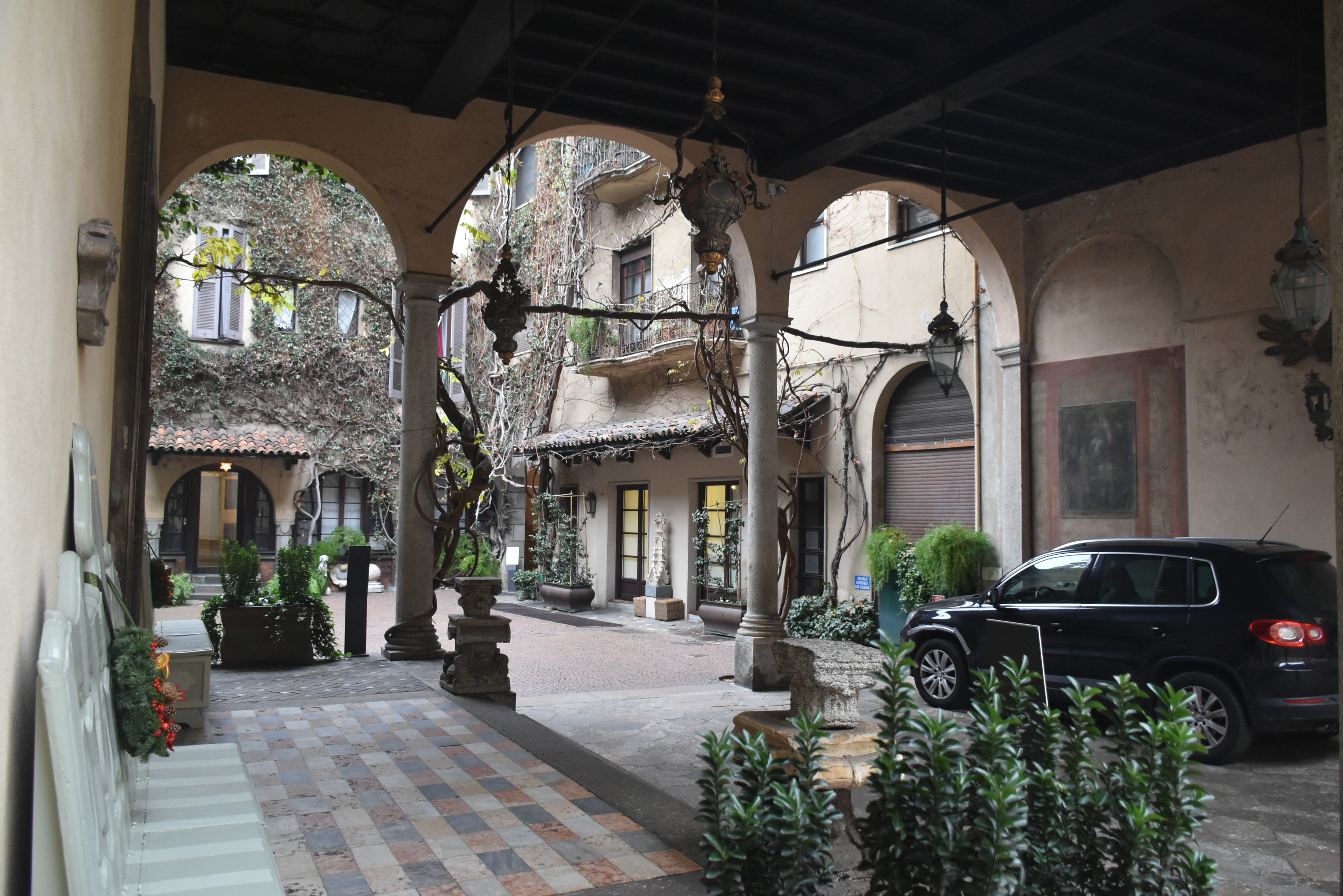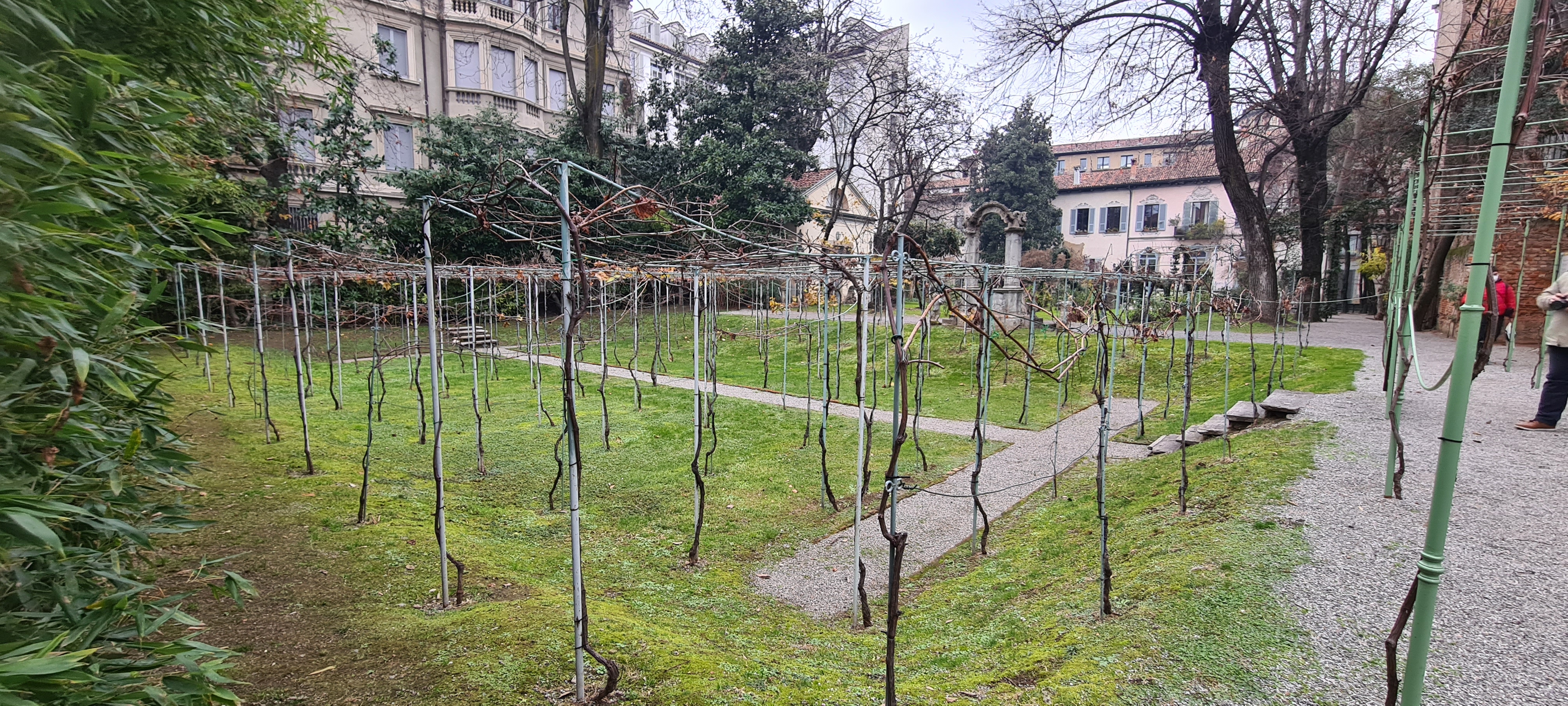Salimos casi sin palabras y con alguna que otra compra de la tienda. Justo enfrente está la Casa degli Atellani y la Viña de Leonardo.