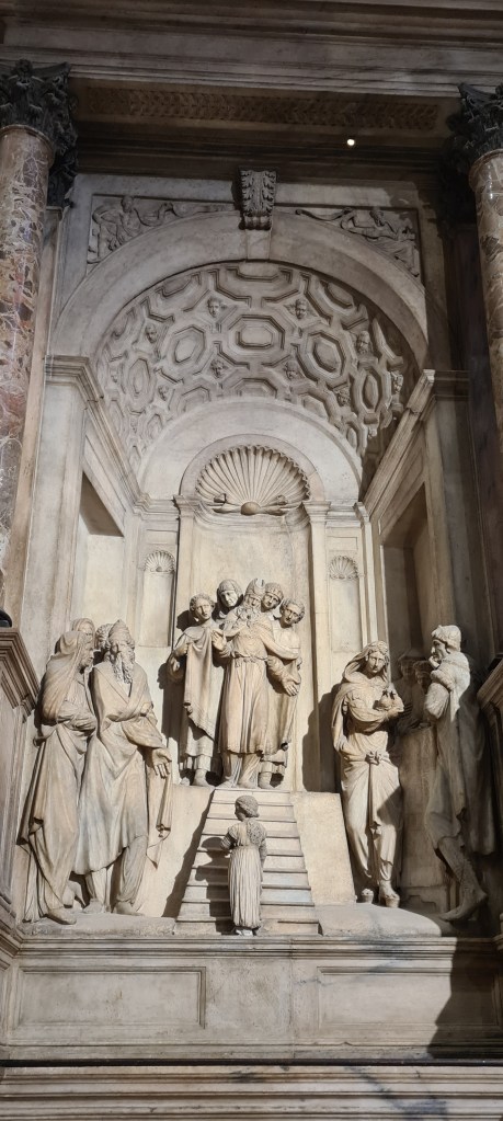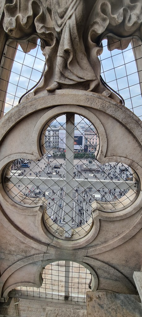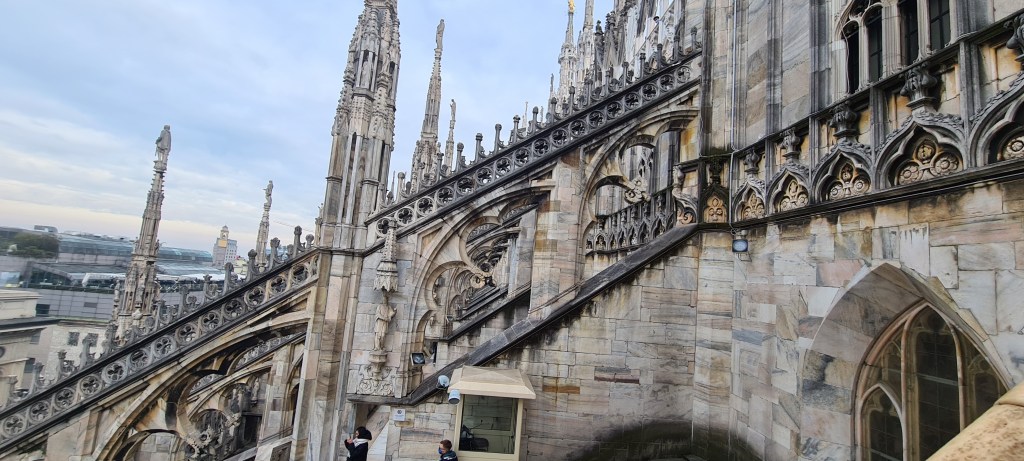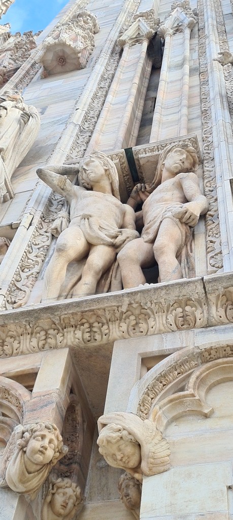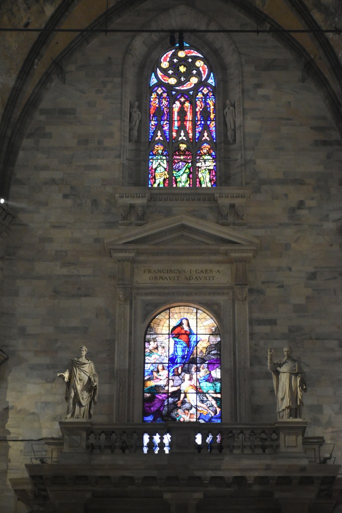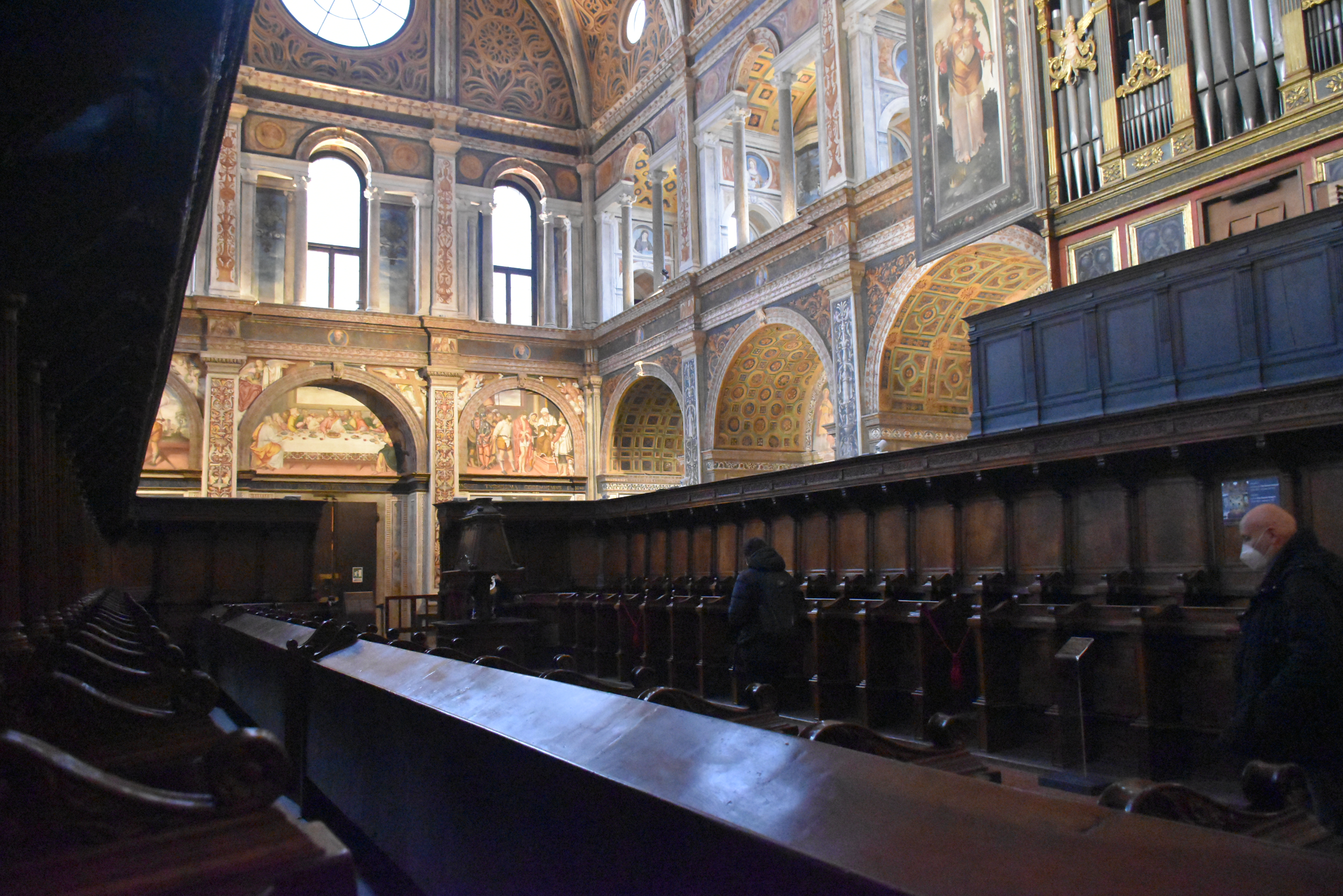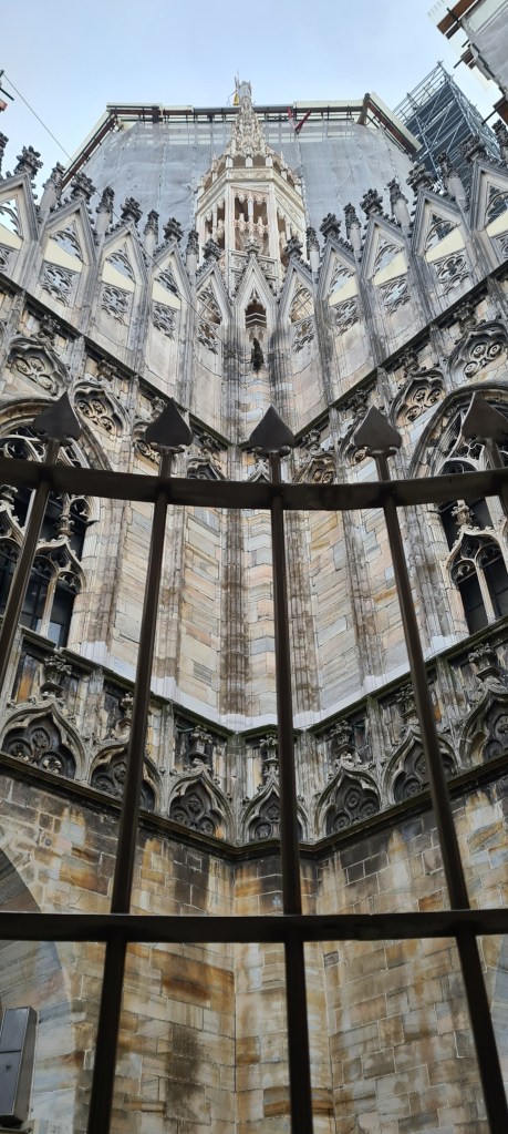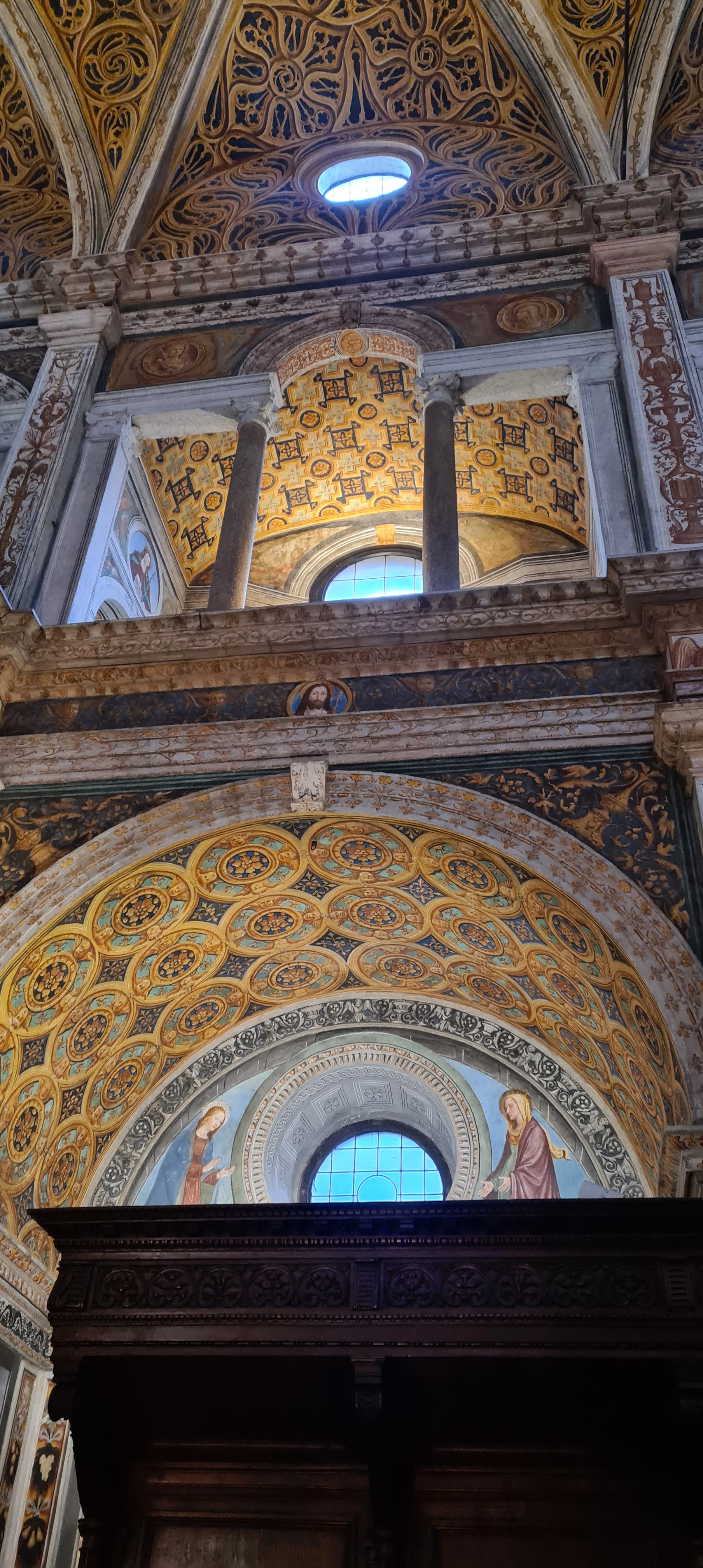 Como llegamos pronto, entramos a ver la iglesia, que no necesita reserva y se puede ver sin colas y sin entrada. La iglesia se construyó entre 1463 y 1490. Fue diseñada por Guiniforte Solari. Ludovico Sforza «El Moro» el gran señor de Milán quería que fuera mausoleo.
