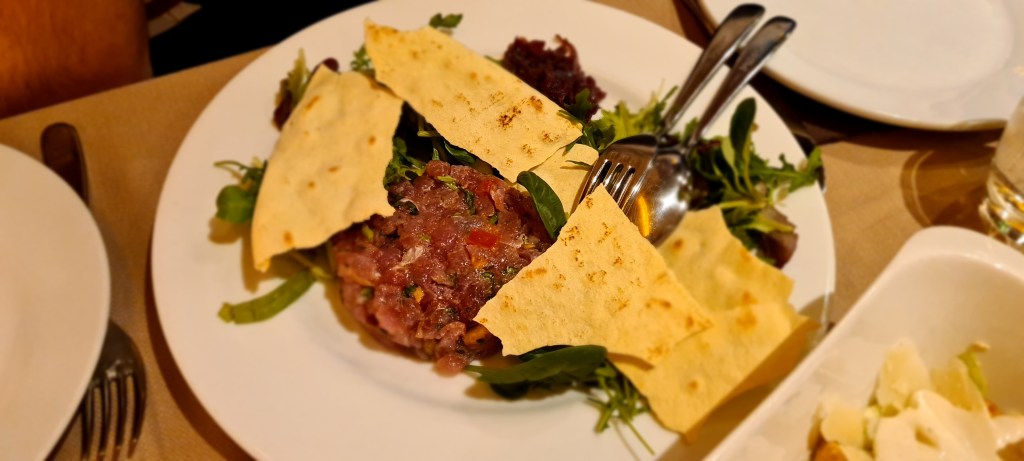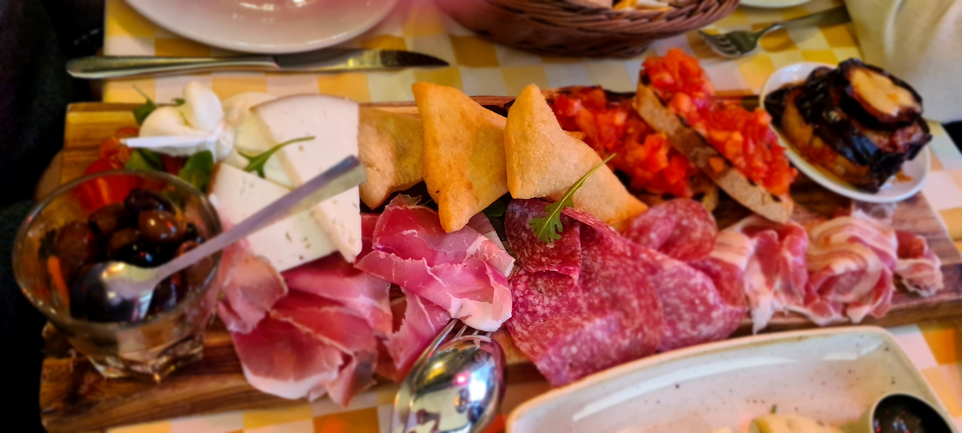 Para mí, una de las mejores comidas que hicimos en Milán. El mío de embutido típico milanés, para chuparse los dedos.