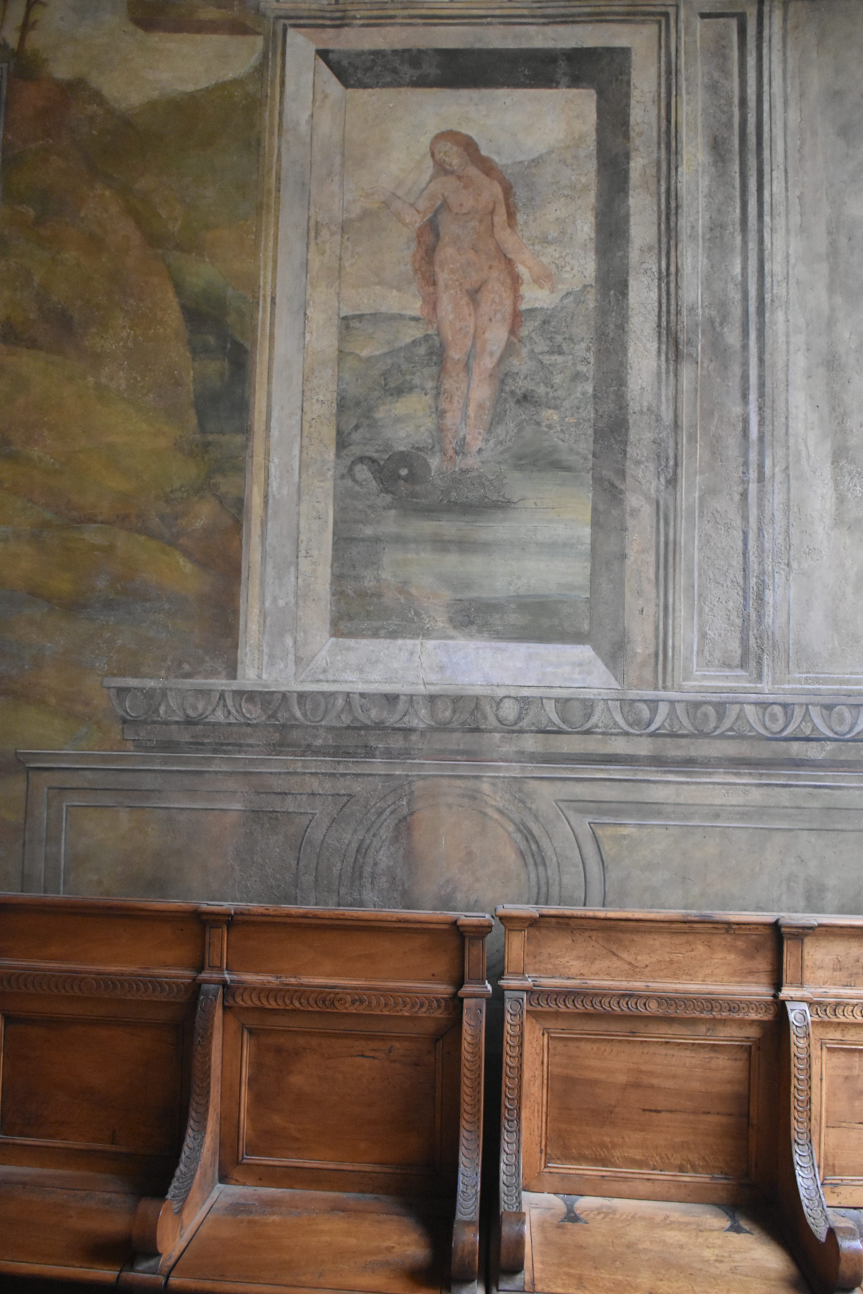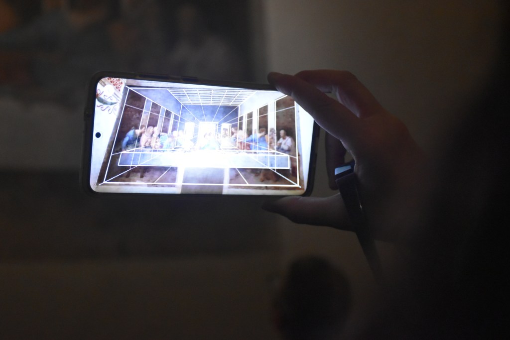 Leonardo hizo la obra con tempera, no como se hacía los frescos en ese momento. Lo hizo igual que si hubiera pintado en un lienzo, porque decía que los detalles se podían hacer mejor, captar la luz, los gestos…