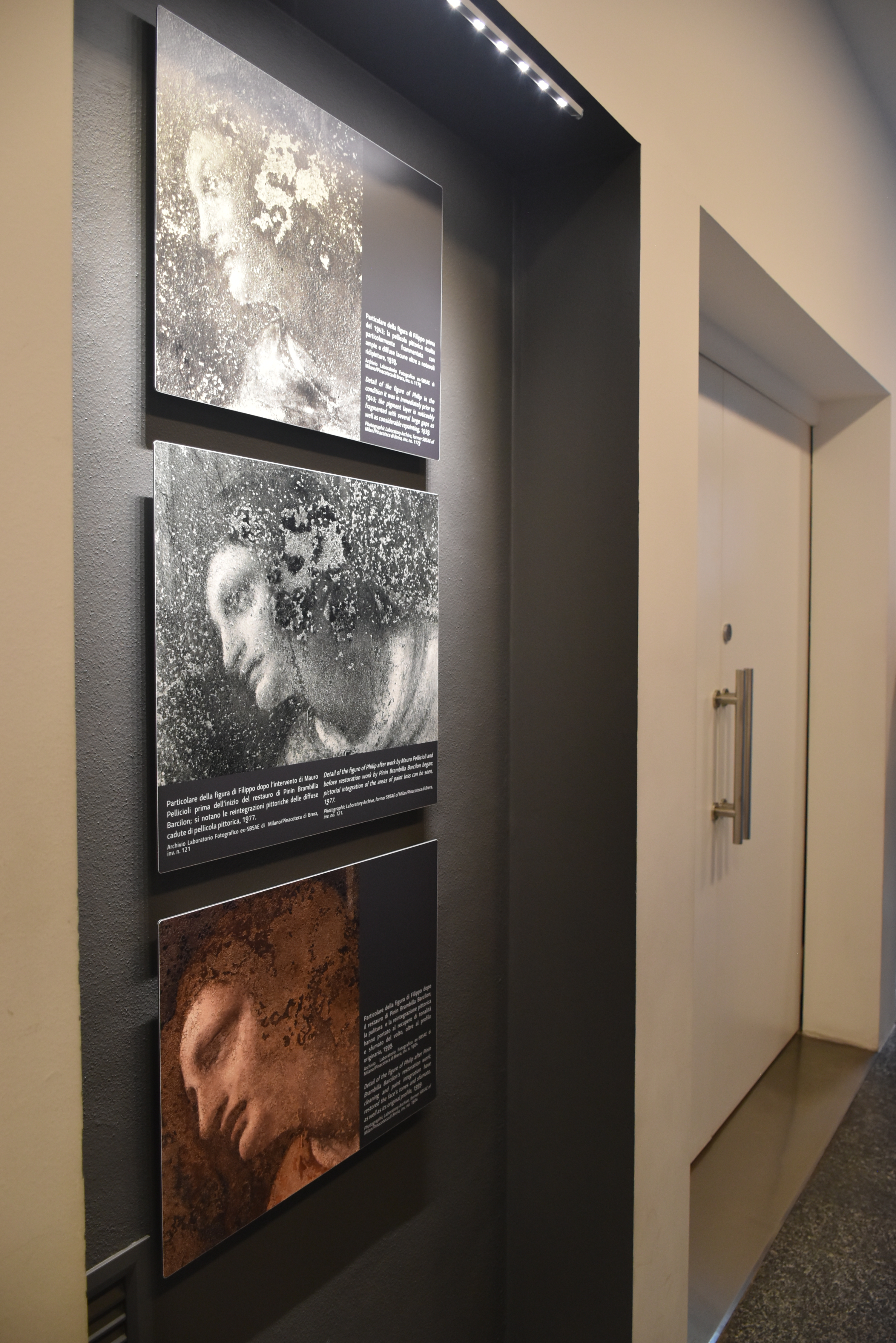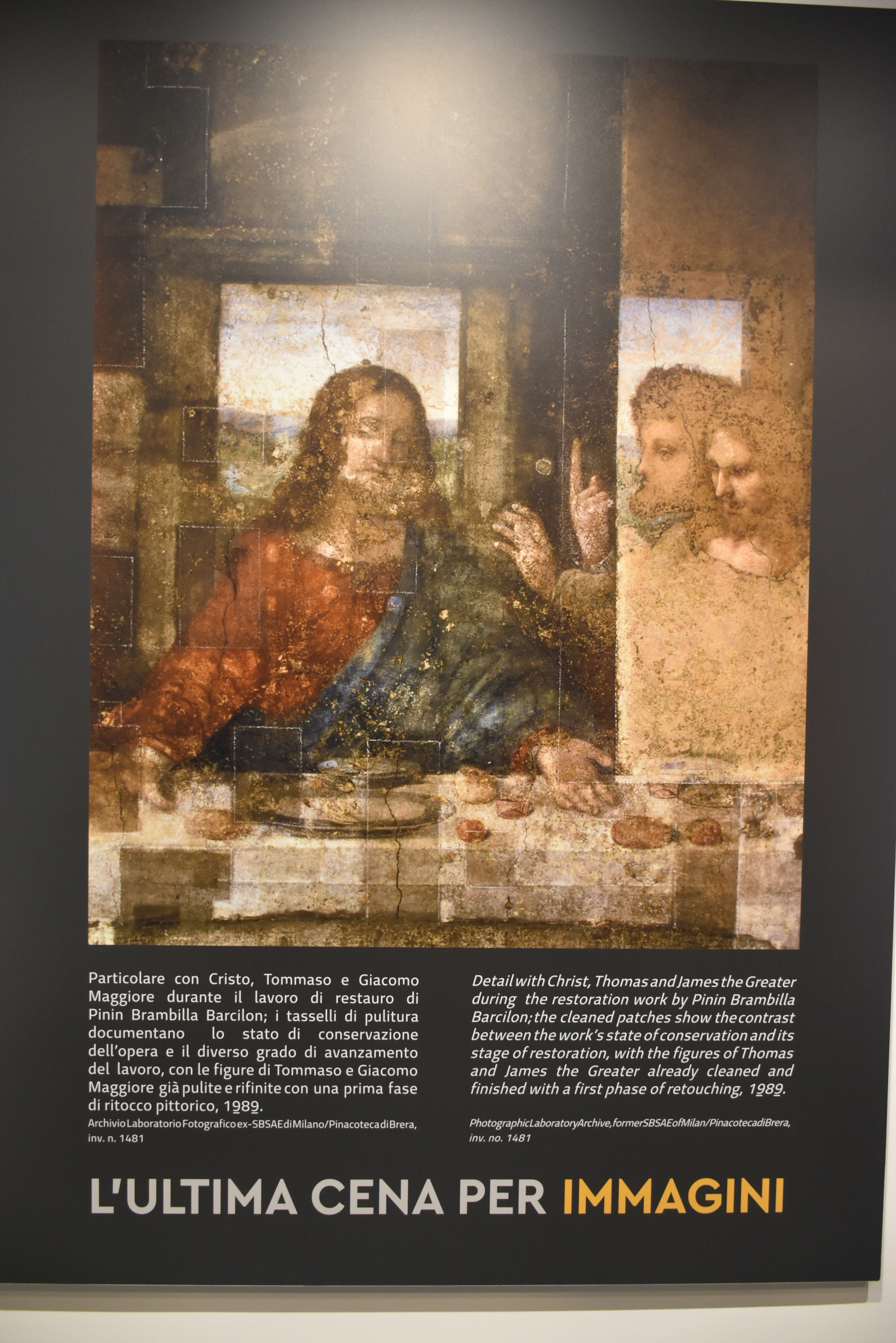 Al salir de la sala, por distintas puertas, hay una pequeña exposición sobre las diferentes restauraciones. ¡Qué pena que una mala restauración, pueda estropear una gran obra para siempre! Eso es lo que ha pasado con La Última Cena de Leonardo da Vinci.