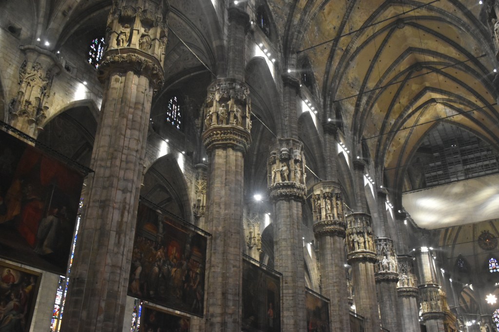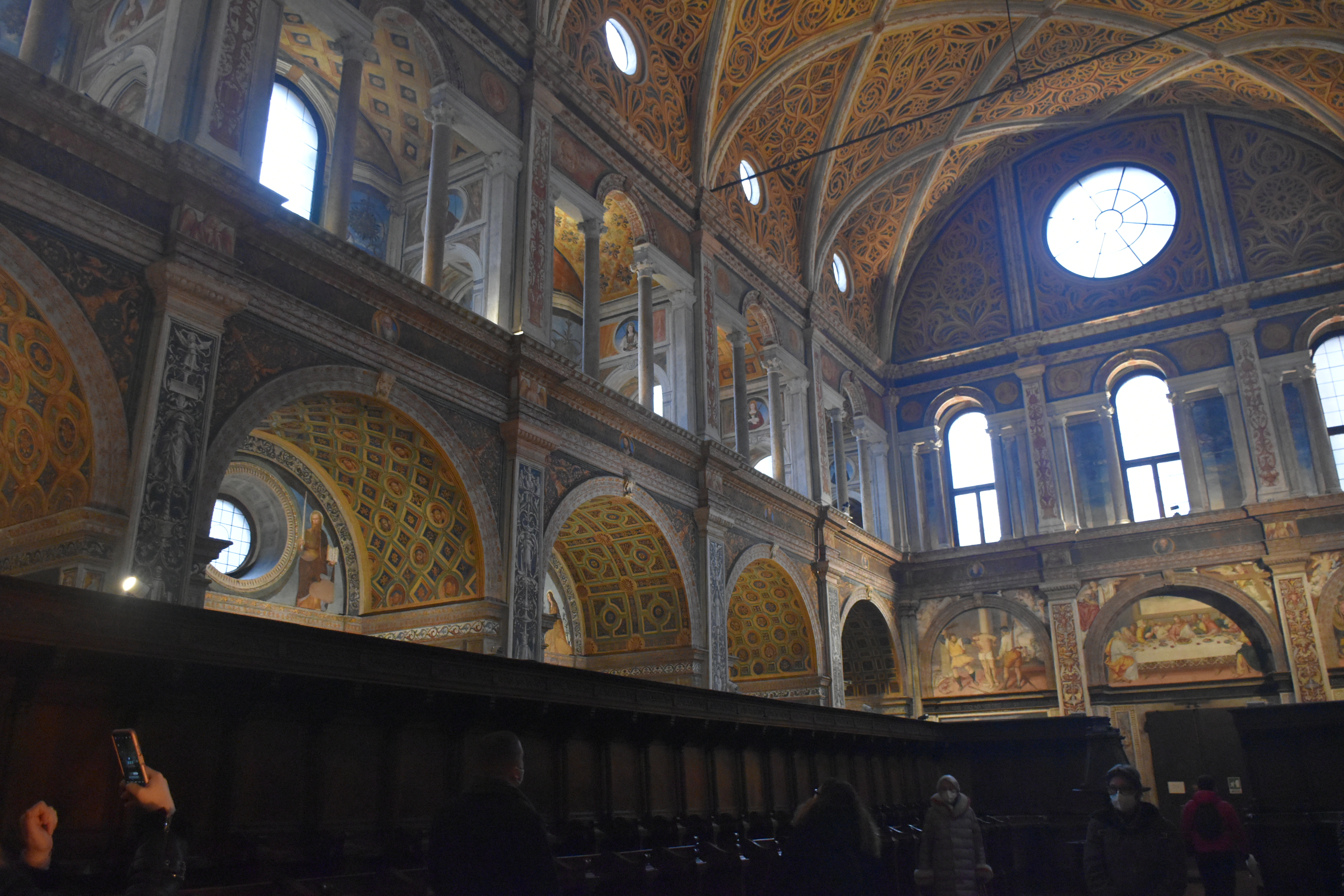 Seguimos callejeando, pero ya con el estómago lleno, nos encontramos una iglesia al lado del Museo Arqueológico de la ciudad. No podíamos imaginarnos que por dentro fuera así. ¡Nos dejó con la boca abierta la Iglesia de San Mauricio! En la calle Corso Magenta.