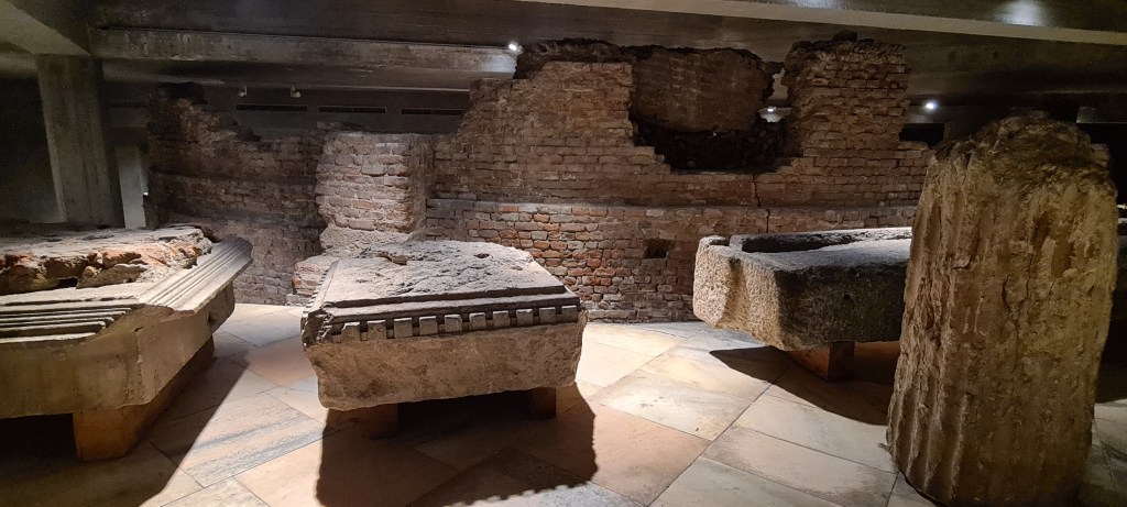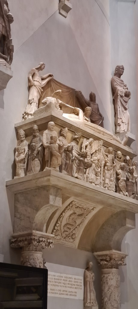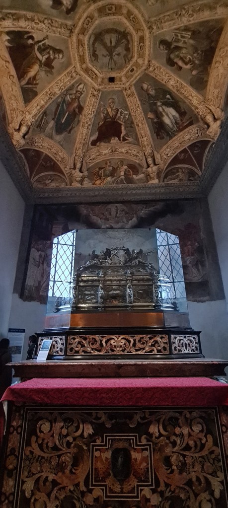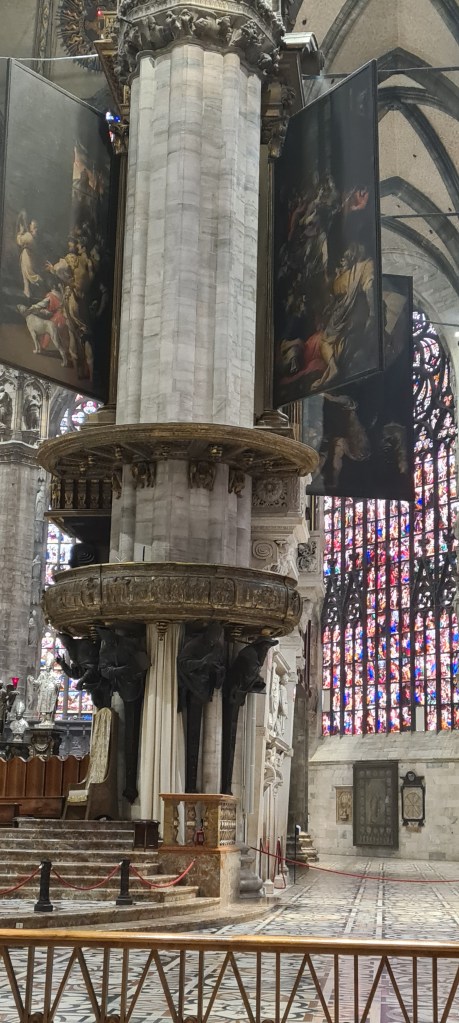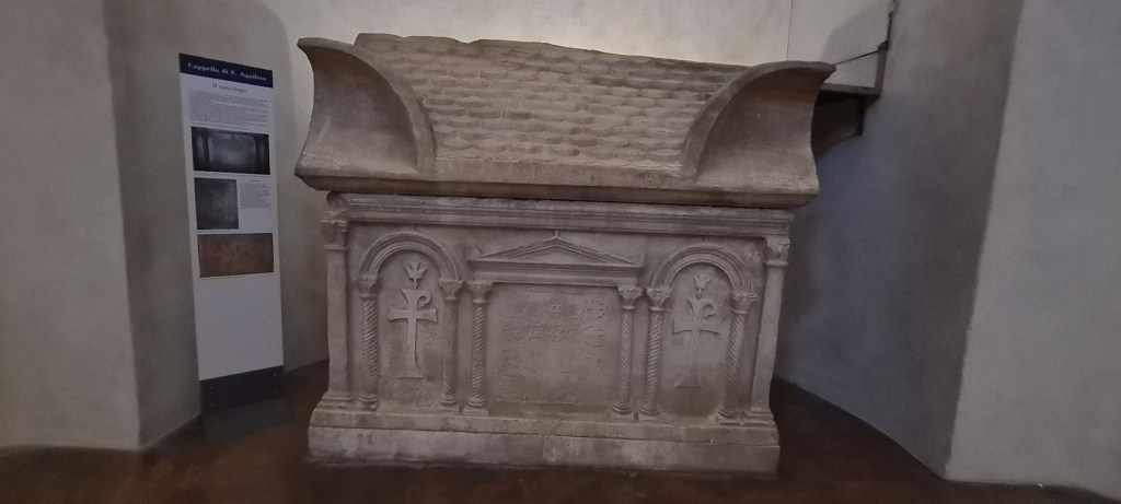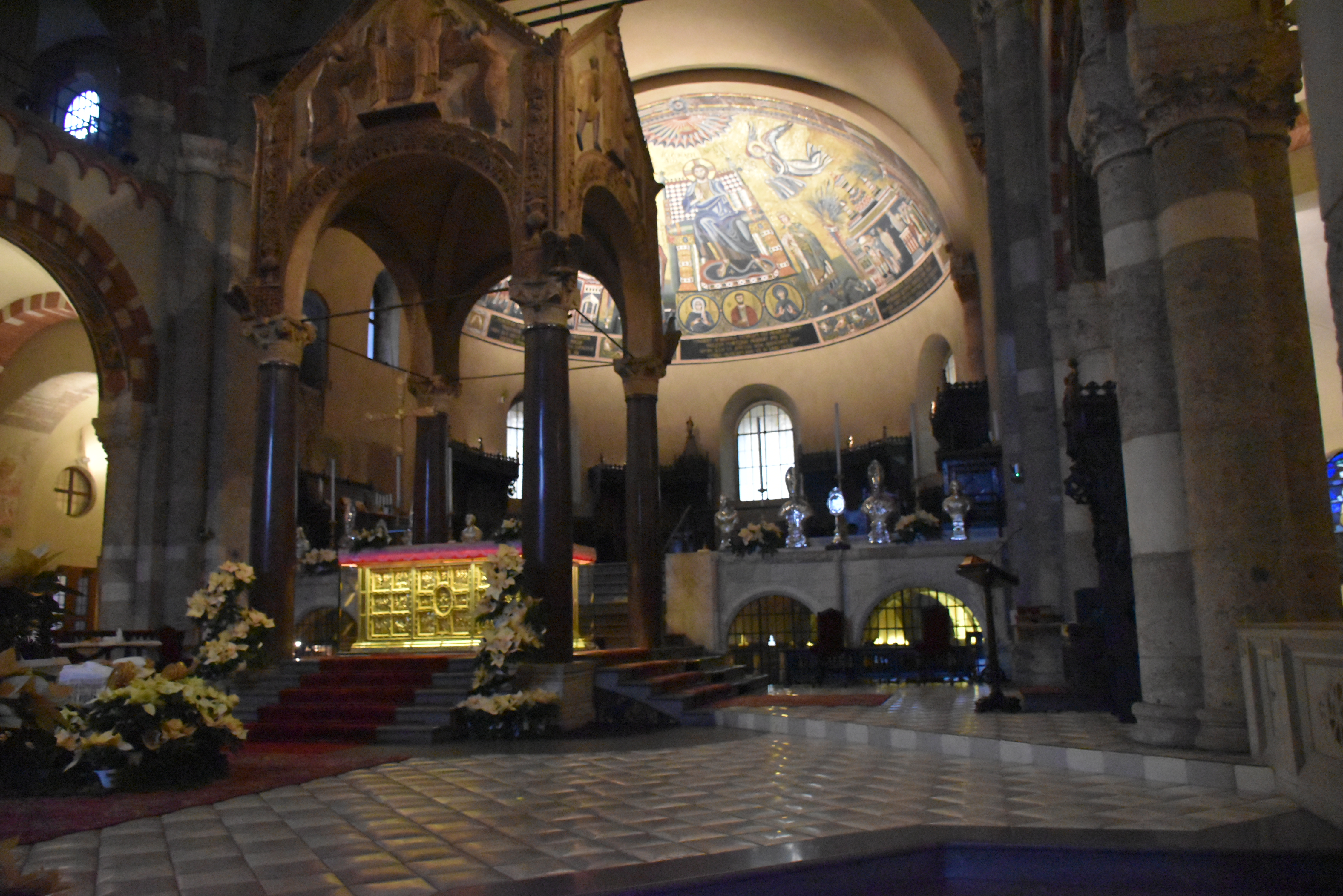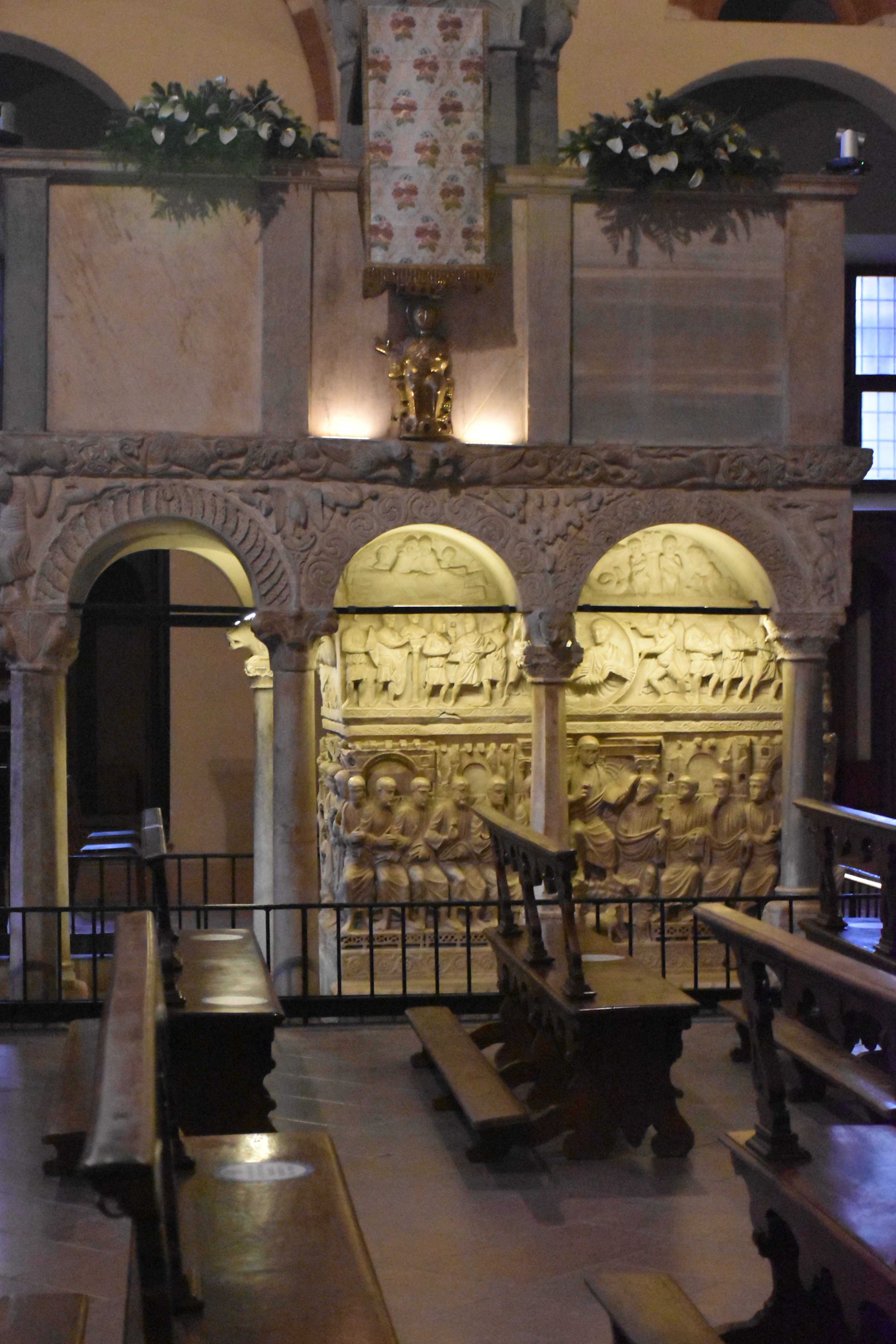 La pieza más increíble está debajo del púlpito y es el sarcófago de Stilicho del siglo IV. Siempre se había pensado que era la tumba de ese general romano. Ahora después de distintas investigaciones, se cree que podría contener los restos del emperador Graciano.