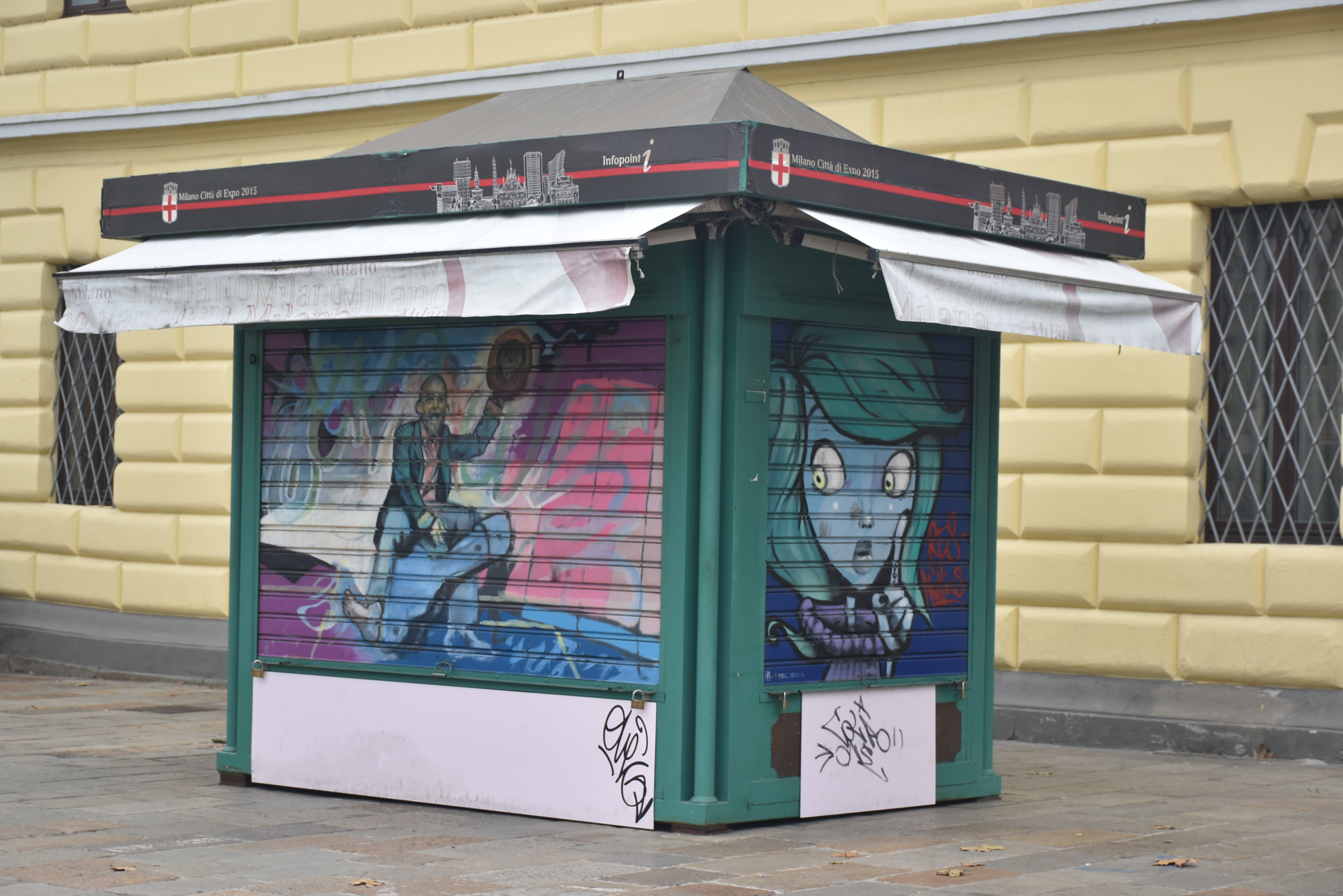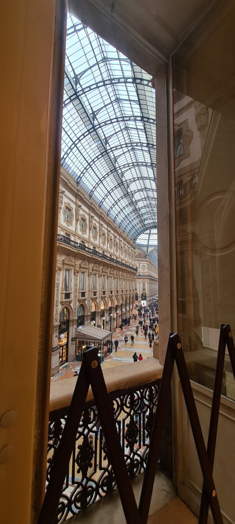 Callejeamos un poco, porque muy cerca está nuestra siguiente parada casi obligatoria: comer unos panini en De Santis, uno de los más famosos de Milán. Mientras esperamos que los saquen vamos a una pequeña galería que hay justo enfrente.