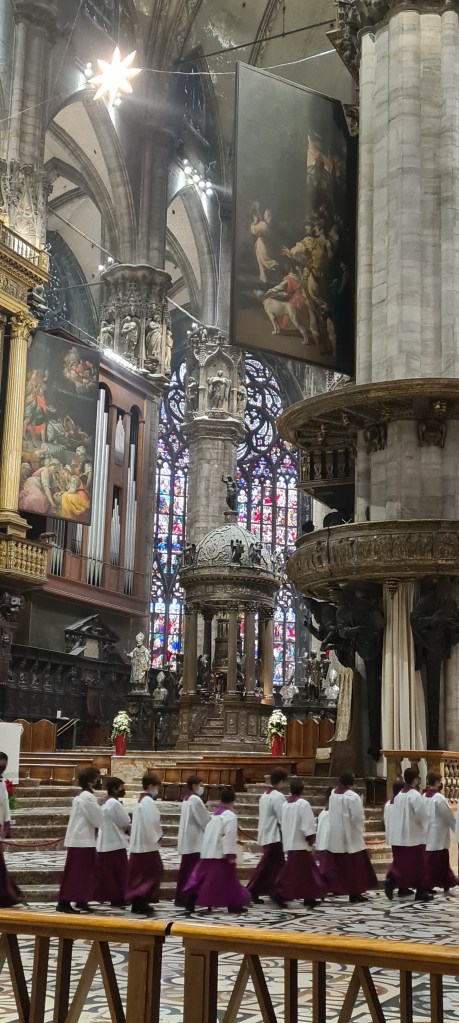 Está a punto de terminar un día intenso y lleno de cosas bonitas: la Última cena de Leonardo da Vinci, vino de vides del siglo XV. Hemos comido los mejores panini de Milán. De casualidad hemos descubierto la iglesia de San Mauricio que apenas sale en las guías turísticas. Hemos paseado por la iglesia donde descansan los restos del patrón de la ciudad, San Ambrosio. Terminando la tarde recorriendo las salas de una de las Pinacotecas más importantes de Italia, di Brera….