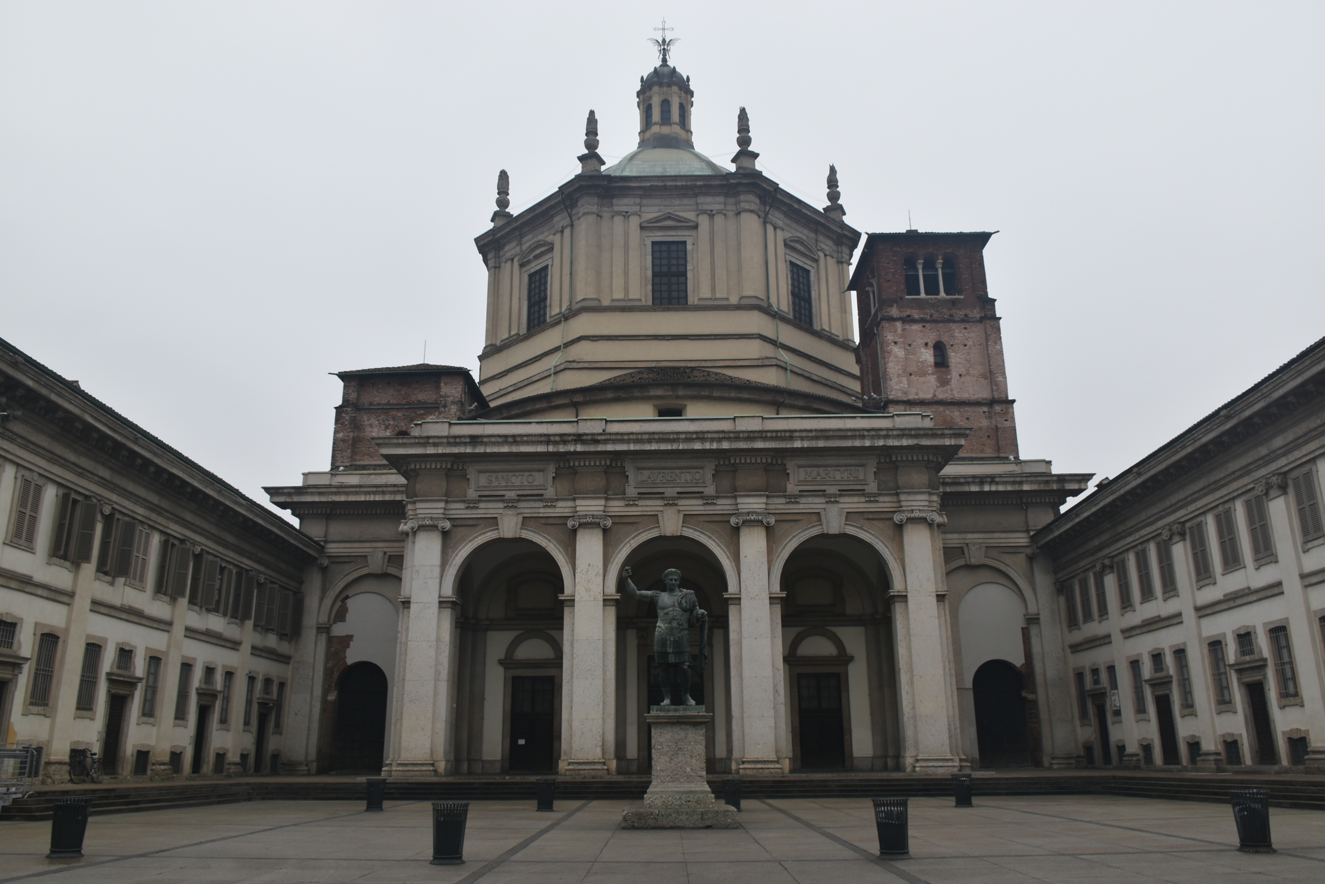 San Ambrosio, fue construida entre el 379 y el 386 sobre un cementerio de los primitivos cristianos. En 1492 los Sforza pidieron a Bramante que restructurara la rectoría y el monasterio. En 1943 sufrió serios daños después de los bombardeos de la Segunda Guerra Mundial. Se conserva en el interior el sepulcro de San Ambrosio.