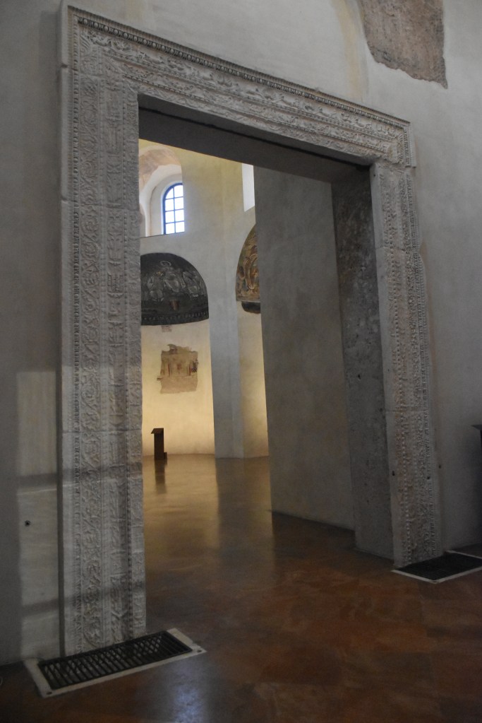El atrio es quizá la imagen más conocida de la iglesia. Fue utilizado para que se refugiaran los habitantes de la ciudad, antes que se construyeran las murallas. Los capiteles de las columnas están decorados con historias de la Biblia y con animales fantásticos, simbolizando la lucha entre el bien y el mal. Algunas son del siglo XI.