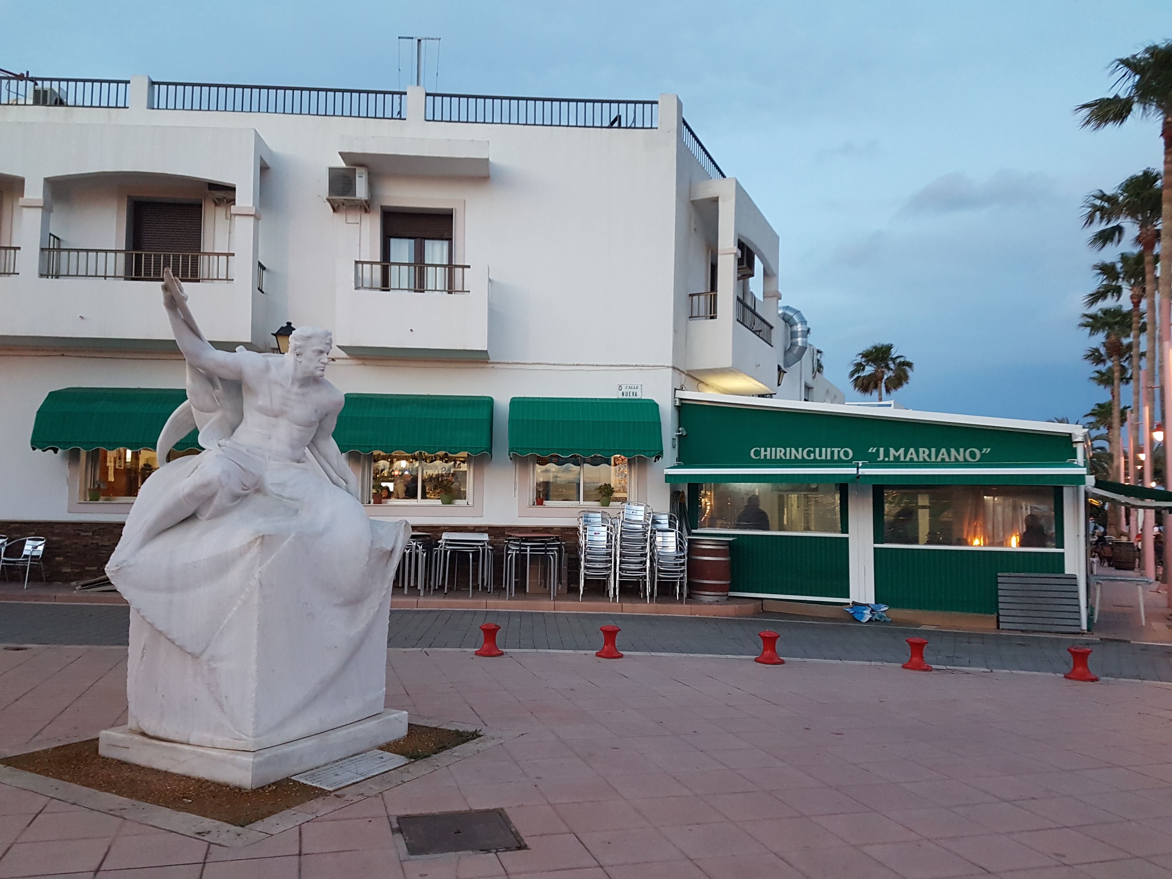 Desde el Mirador hay un corto paseo hasta el aparcamiento en el que habíamos dejado el coche para ir a cenar a Carboneras. Así hemos llegado a nuestro otro descubrimiento: Dando gusto al paladar en… el Chiringuito Mariano.