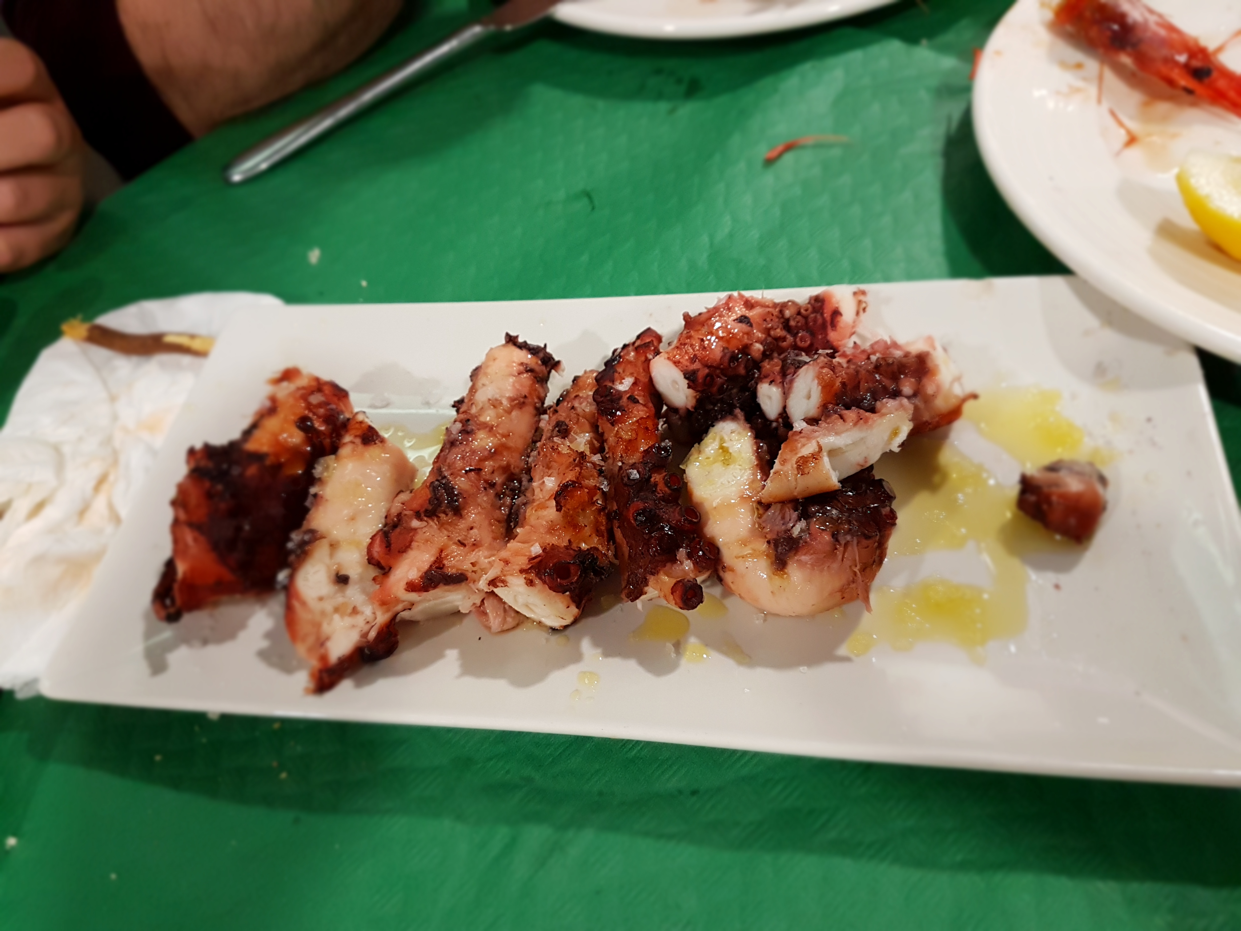 Almería Señora de las tapas y Capital Gastronómica 2019, no nos decepciona. Encontramos un bar, Asador Sabor a Leña, cuya especialidad son las tapas y el calamar, ¡qué pena que no probamos el calamar! Cuando vimos que lo sacaban para otra mesa, nos arrepentimos.