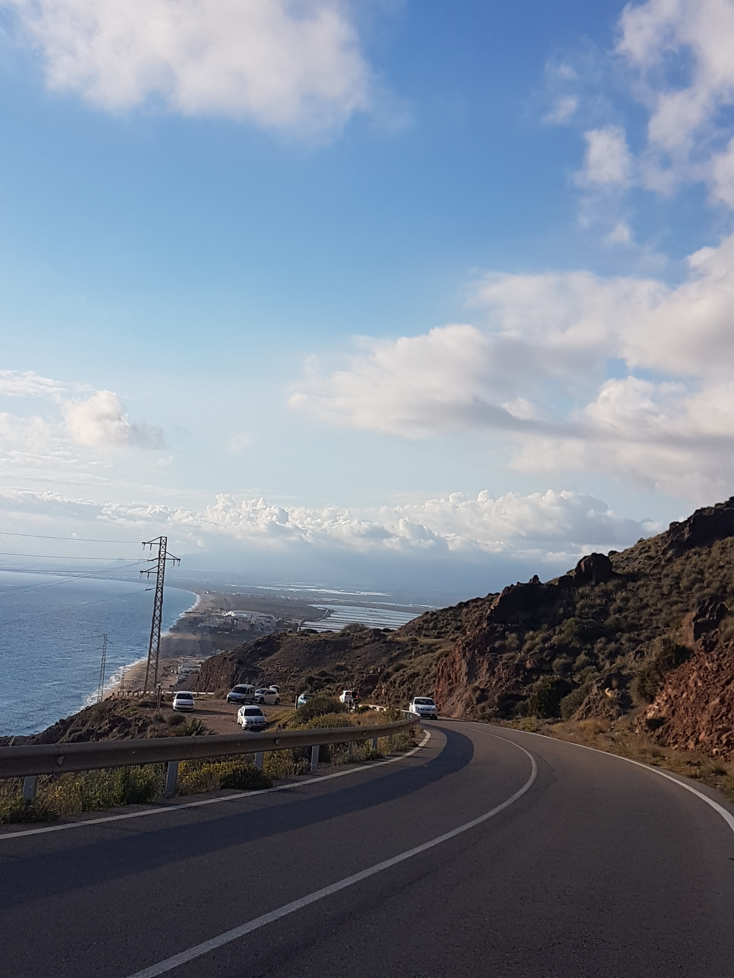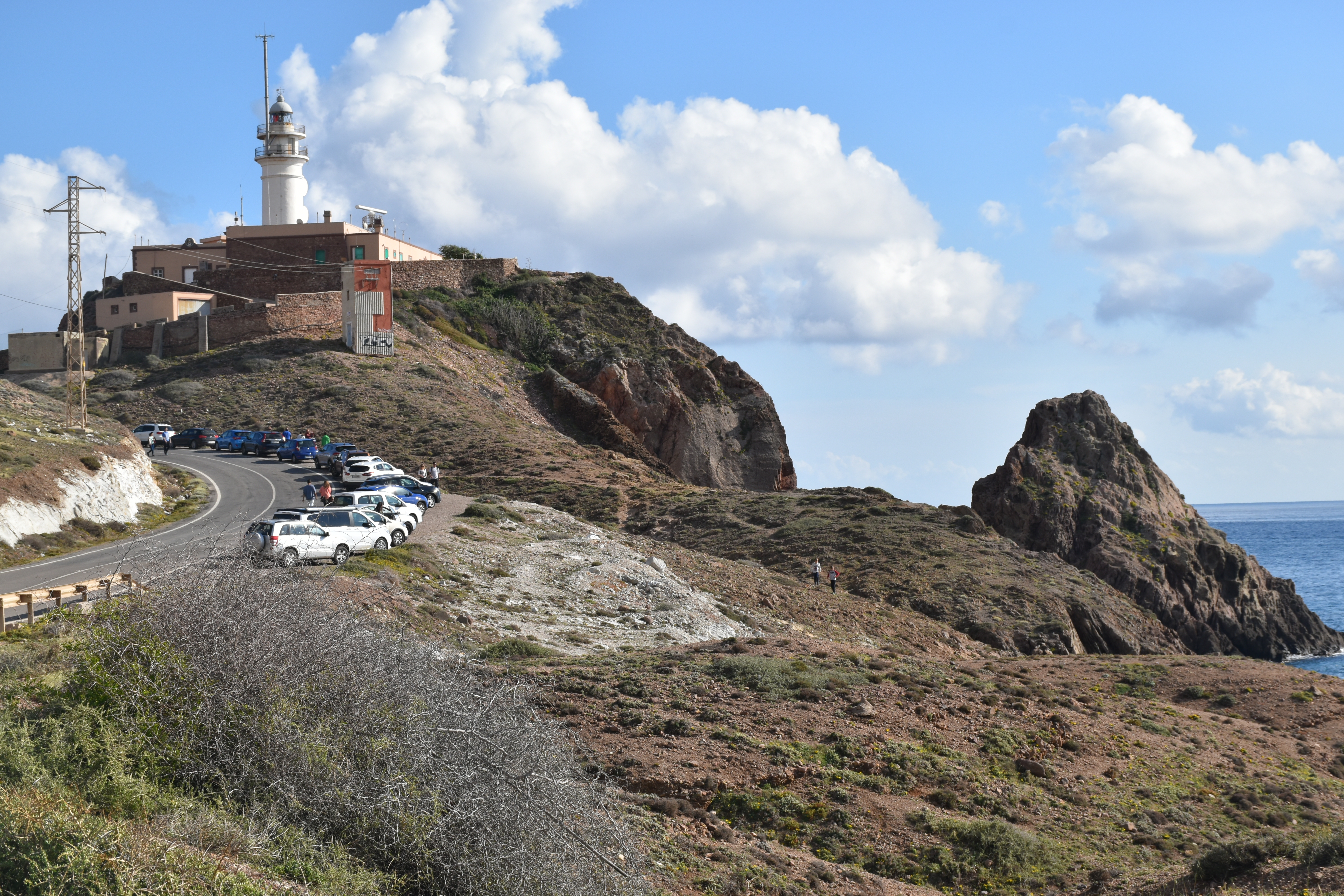 Viajar al famoso Faro de Cabo de Gata, no tiene ninguna perdida, desde el pueblo de Cabo de Gata hay una carretera directa y desde San José También. Nosotros lo hicimos desde el primero. ¡Las vistas ya iban mereciendo la pena!