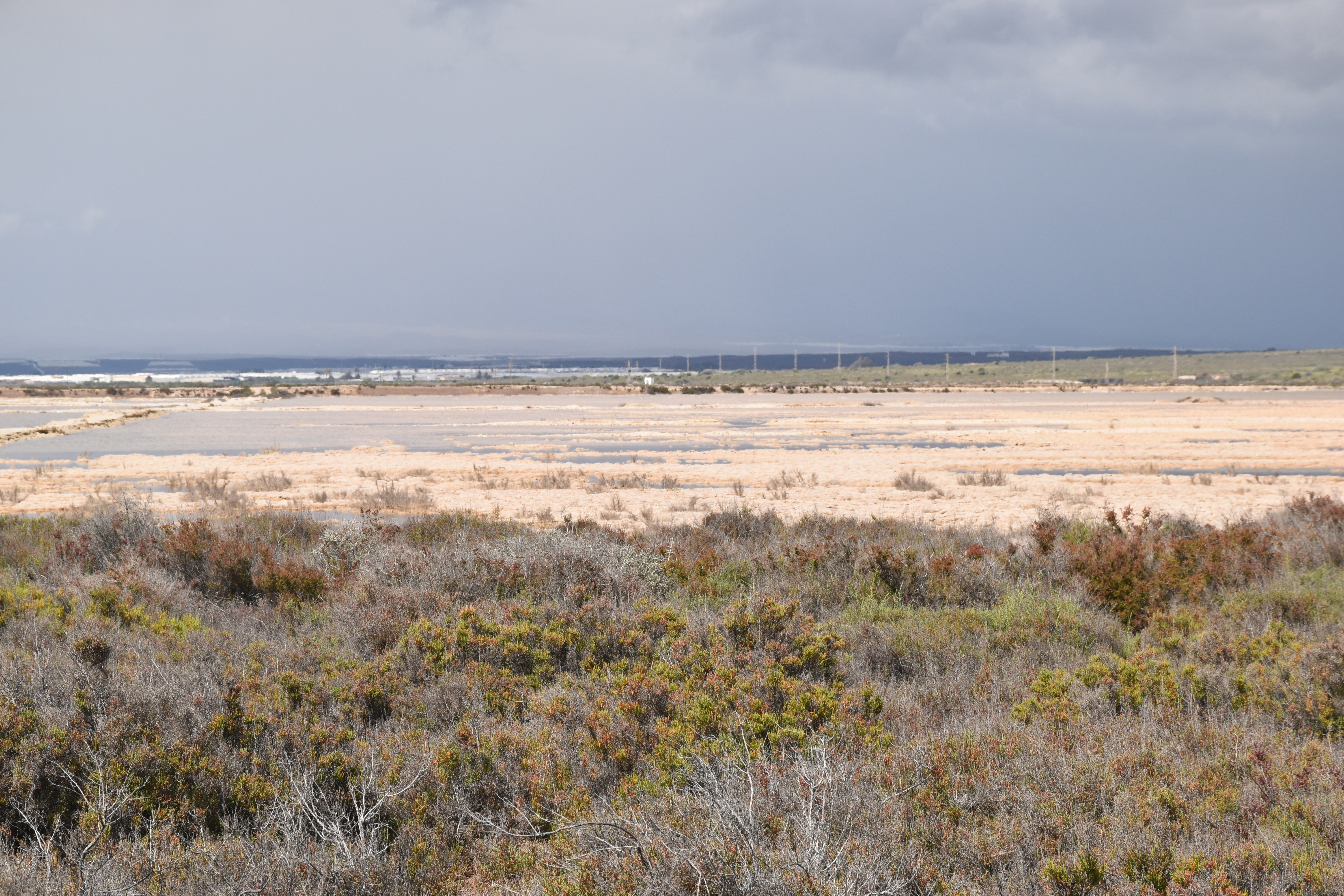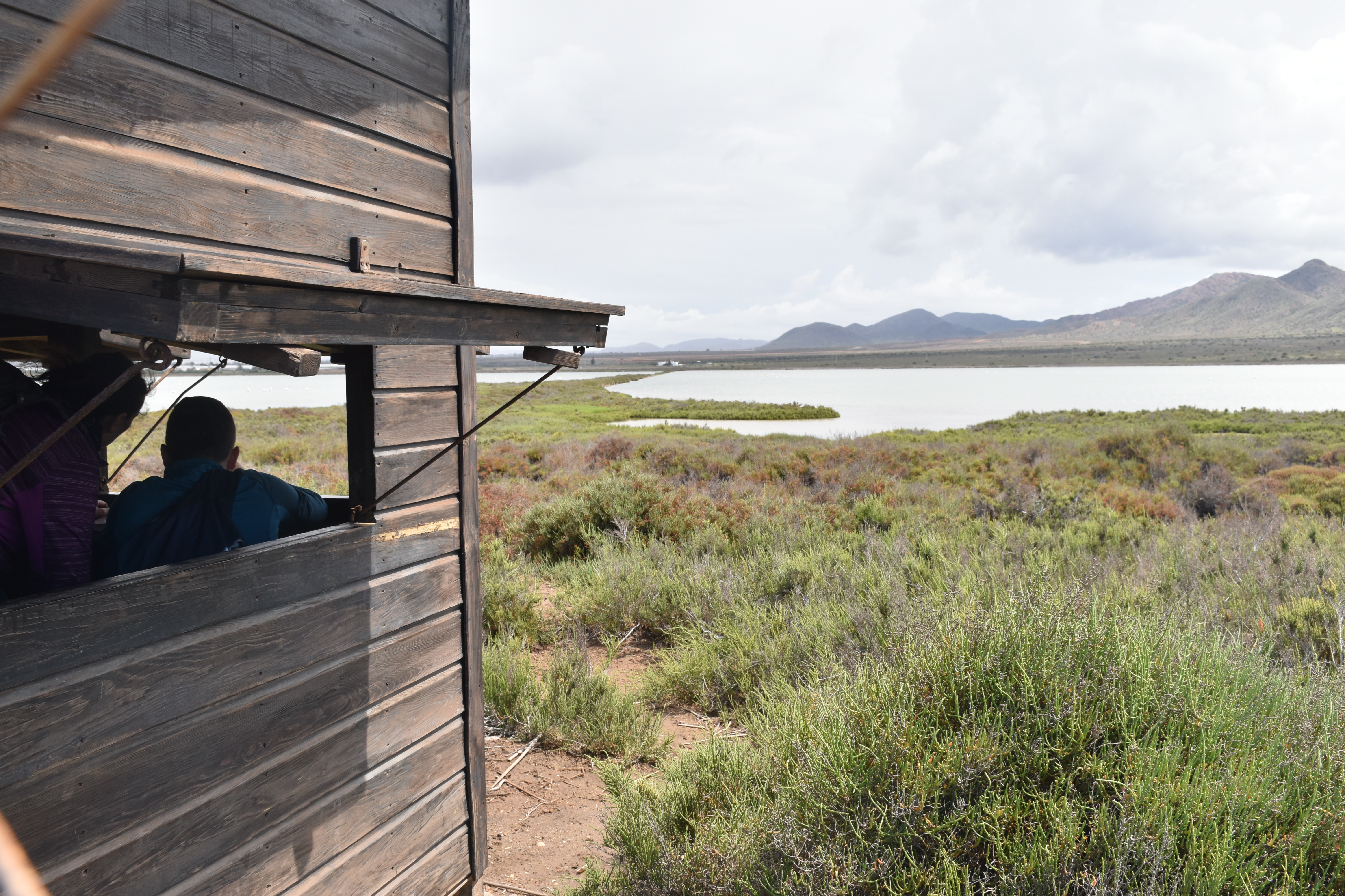 Durante el camino nos encontramos a la izquierda tres observatorios para ver aves en la laguna salada. Aún hoy se extra sal.