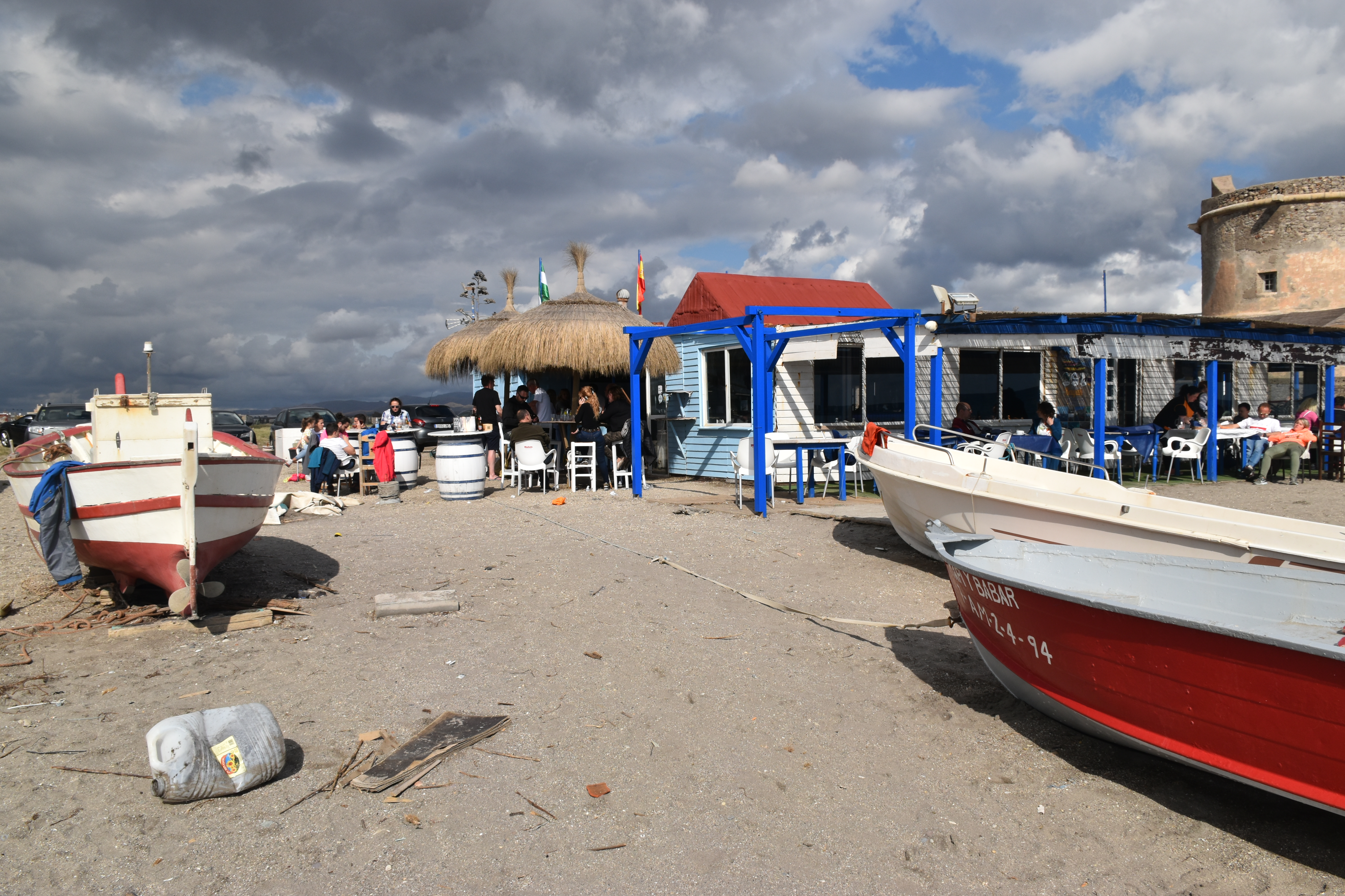 Para colmo empieza a llover, menos mal que solo un poco, nos da tregua para tomarnos una cerveza en un chiringuito del pueblo Cabo de Gata.
