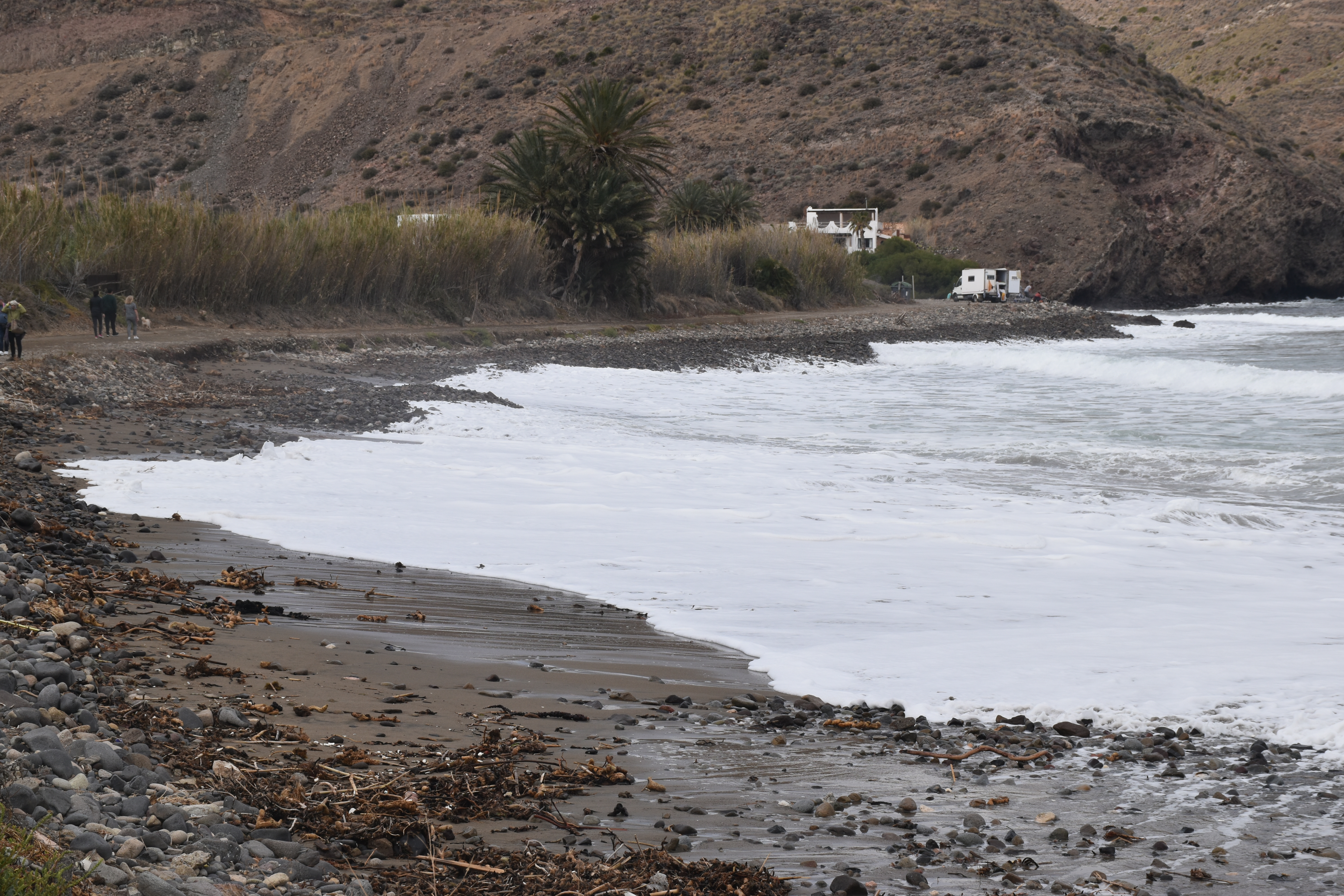 Aprovechando que había dejado de llover en esa mañana de Sábado Santo, nos fuimos a ver bien la Playa de Los Escullos, esta al lado del Camping donde estábamos nosotros.