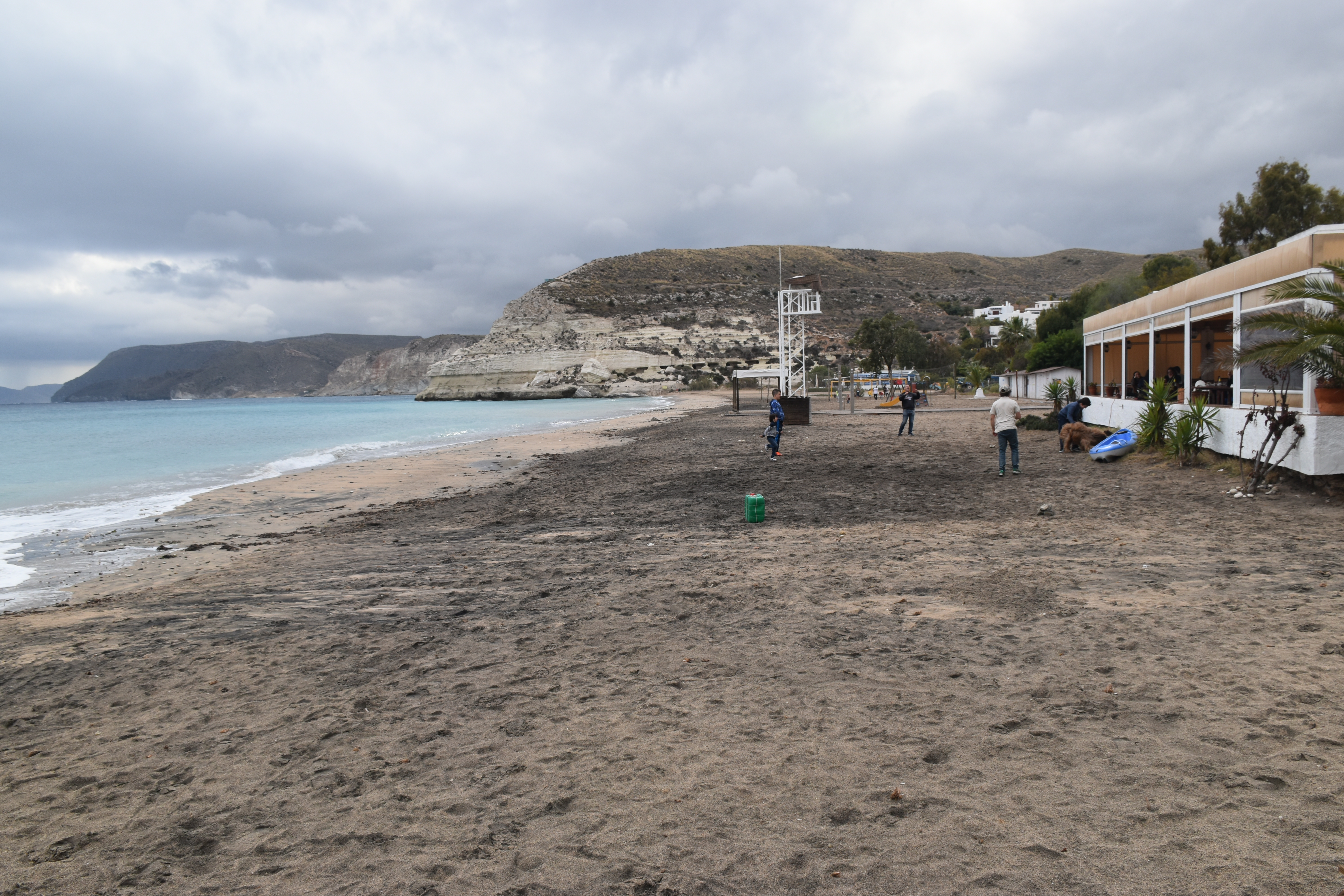 De Las Negras y como tentando a la suerte nos fuimos a Agua Amarga. Dicen que es uno de los pueblos más bonitos del Parque. Pero aquí, ya si que llovió y no nos quedó más remedio que refugiarnos en uno de los bares que dan a la playa y jugar una larga partida de cartas para ver si dejaba de llover y podíamos volver al camping.
