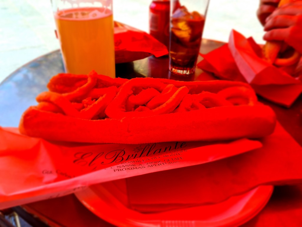 Los mismos pasos que el anterior y a disfrutar, ¡este vino está buenísimo! Justo en este momento llegan los pinchos de el bar El Molino, el de oreja debe ser su especialidad y con un poco de reparo lo pruebo, ¡me encanta! El otro más normal, de gulas, se ha quedado un poco frío, pero también está buenísimo. Sacan también un dulce, que aunque no estaba previsto en la cata, nos da por concluida la cata-comida.