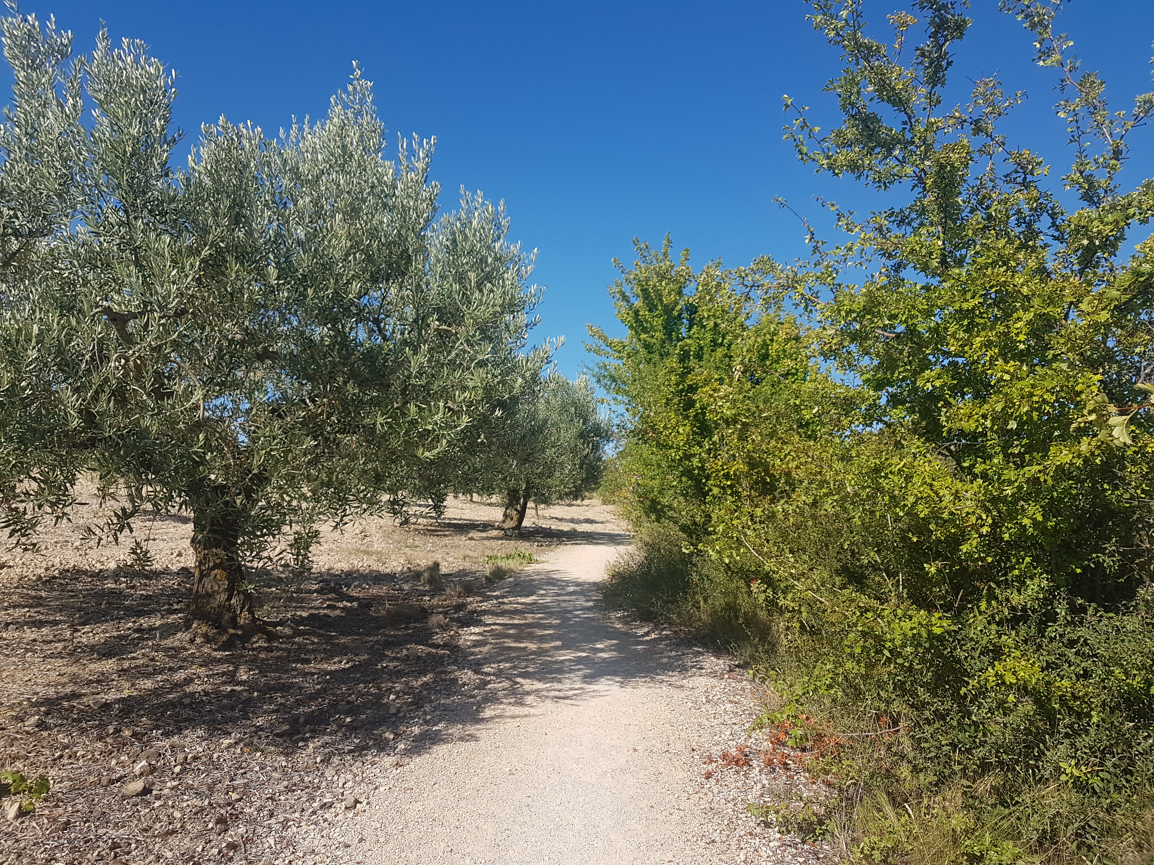 Cuando pasamos un puente muy grande que atraviesa la autovía, la señora de la casa rural, nos dijo que nos fuéramos a la izquierda nada más pasar el puente, siguiendo un pequeño arroyo. Nos dijo que encontraríamos fácil las señales y nos costó un poquito, pero al final las encontramos.
