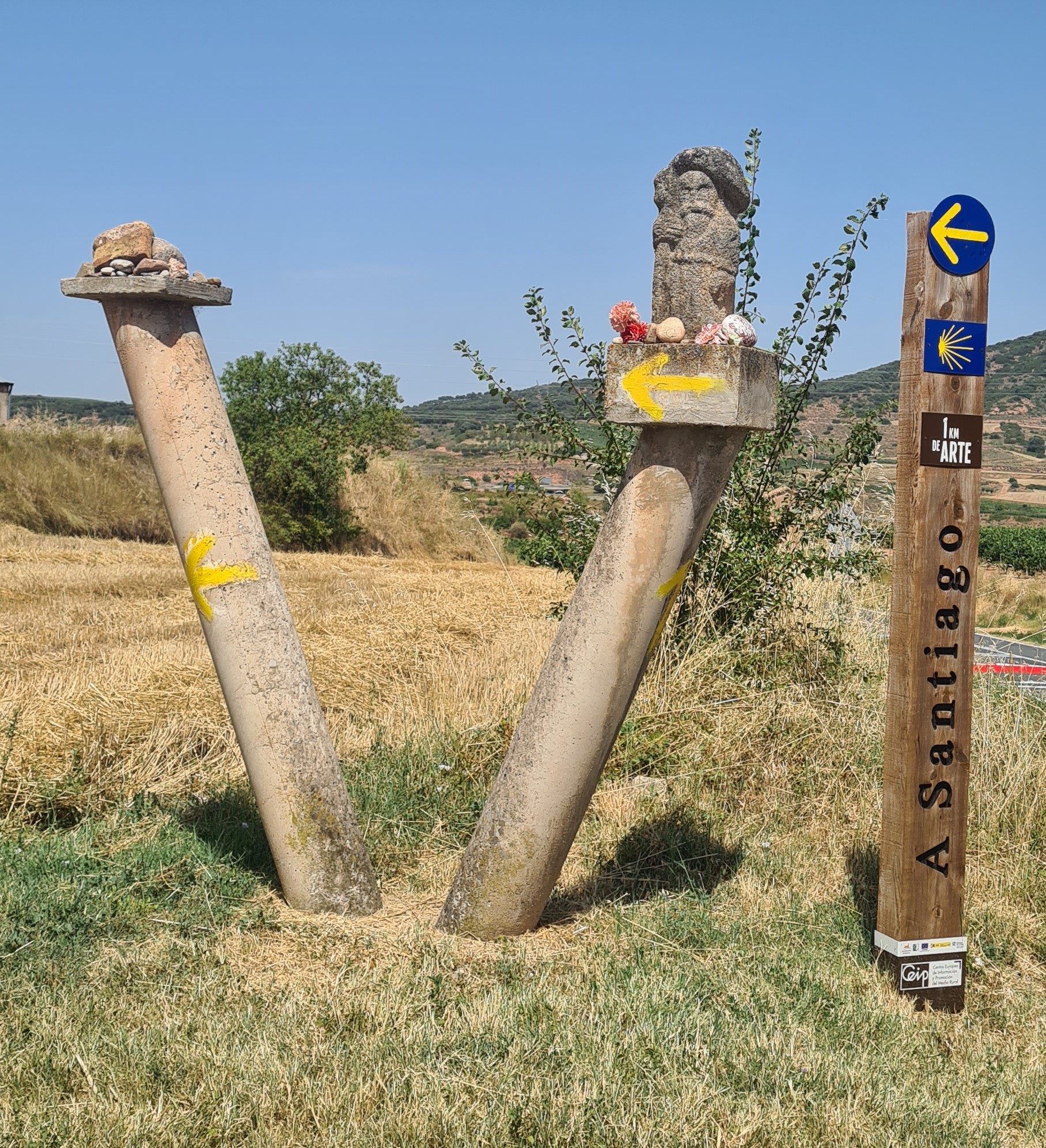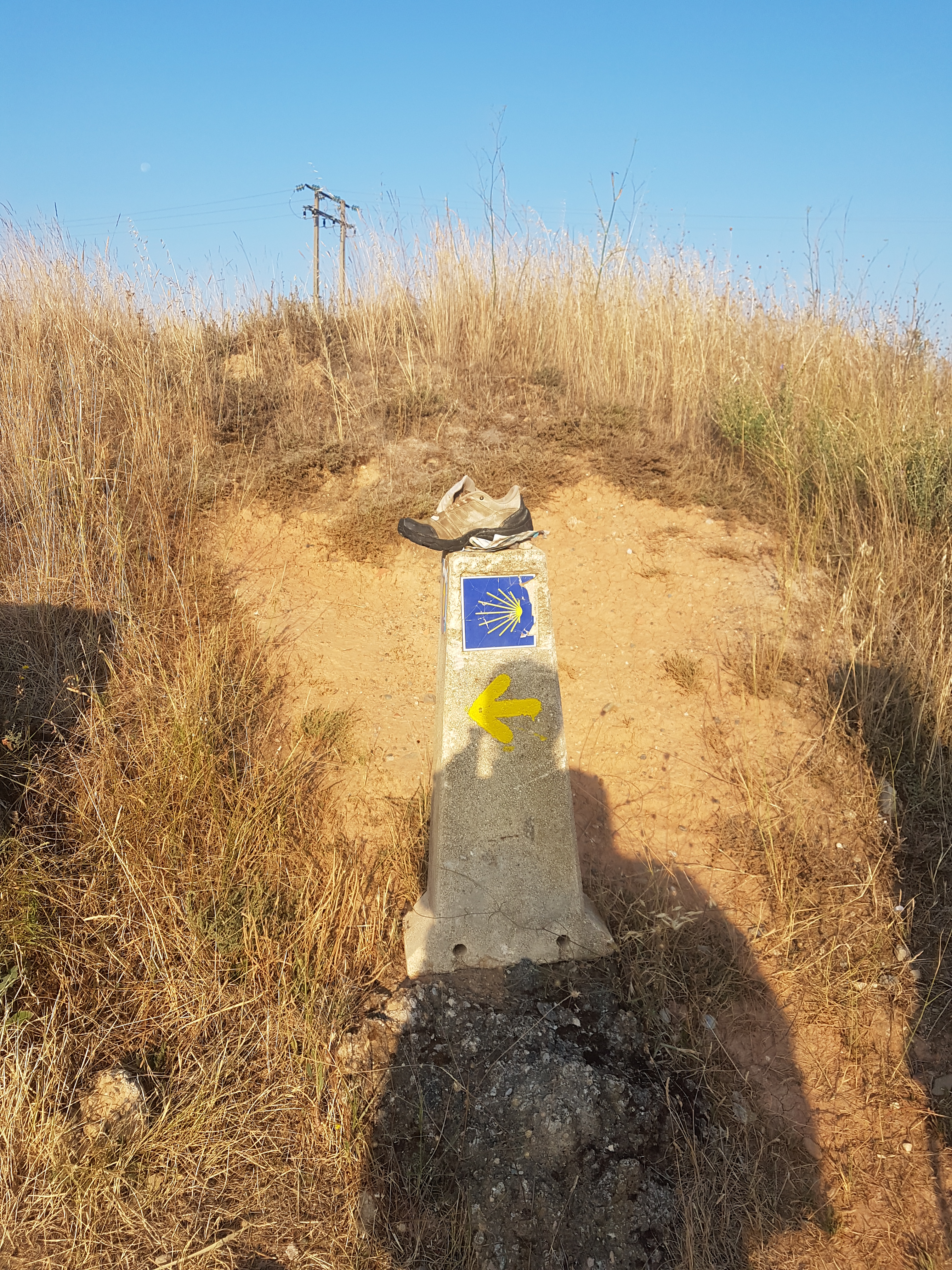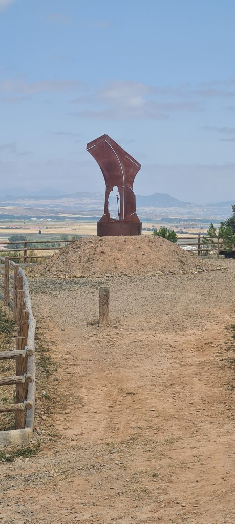 Enseguida podemos ver un campo militar y a unos 2Km de ahí encontramos una cruz de madera. Una cantera y unas antenas de comunicación. Esa vista no es demasiado bonita, la mano del hombre deja huella en el Camino… No siempre es bonita…