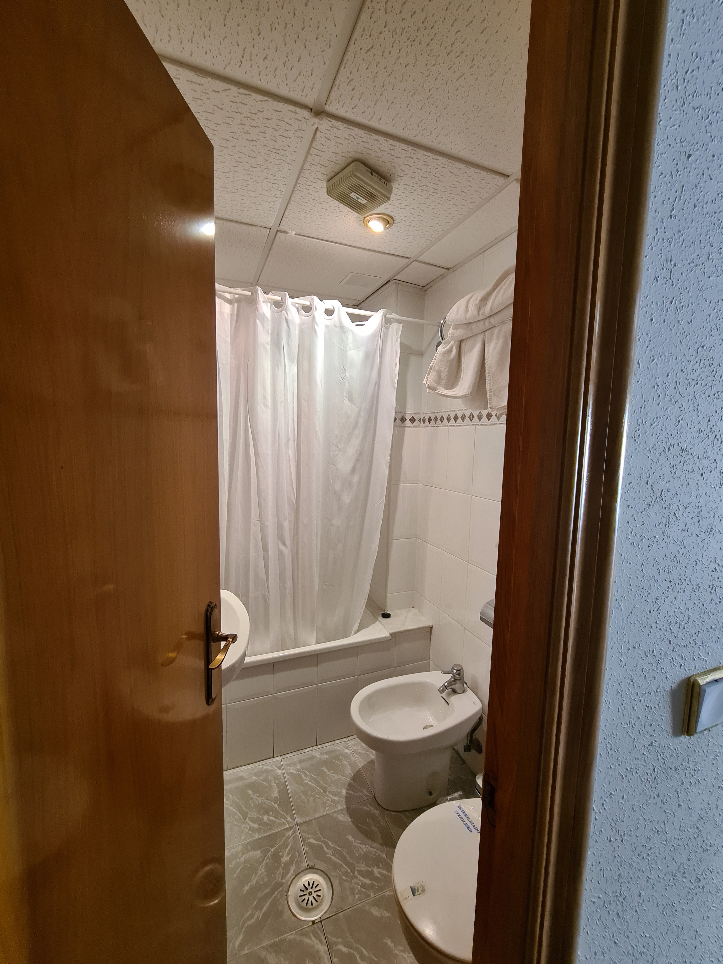 Teníamos una habitación triple muy espaciosa con dos camas grandes y la tercera era un poco más pequeña (supletoria). Mesita, sillas, un escritorio. Bien, sencilla. Me hubiera gustado algún detalle más en los amenities del baño…