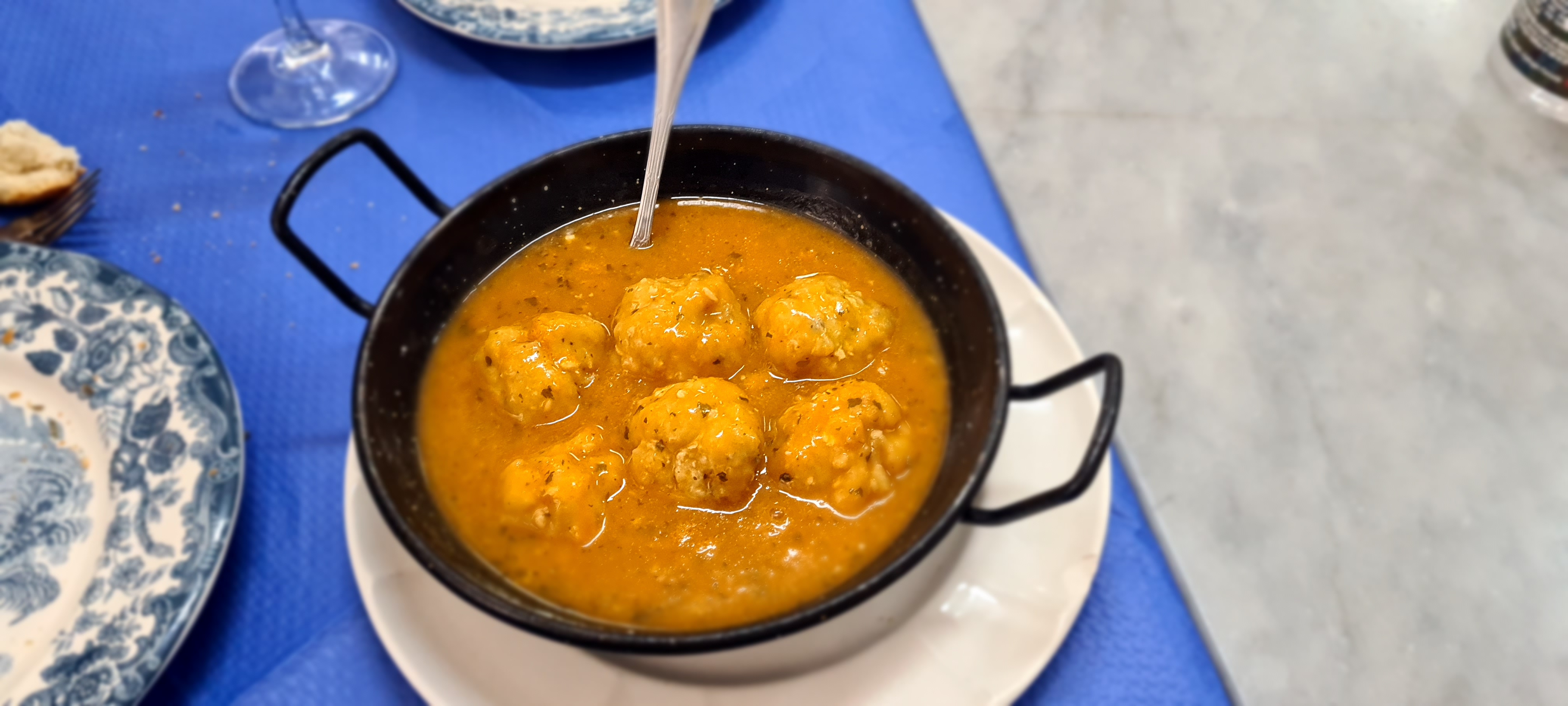 Yo tenía un gran antojo de bocartes y estaban exquisitos. Lo demás que pedimos nos dejamos aconsejar por su dueño, albóndigas de pescado y un rodaballo para compartir dos. (En este viaje solo hemos ido dos, de parejita).