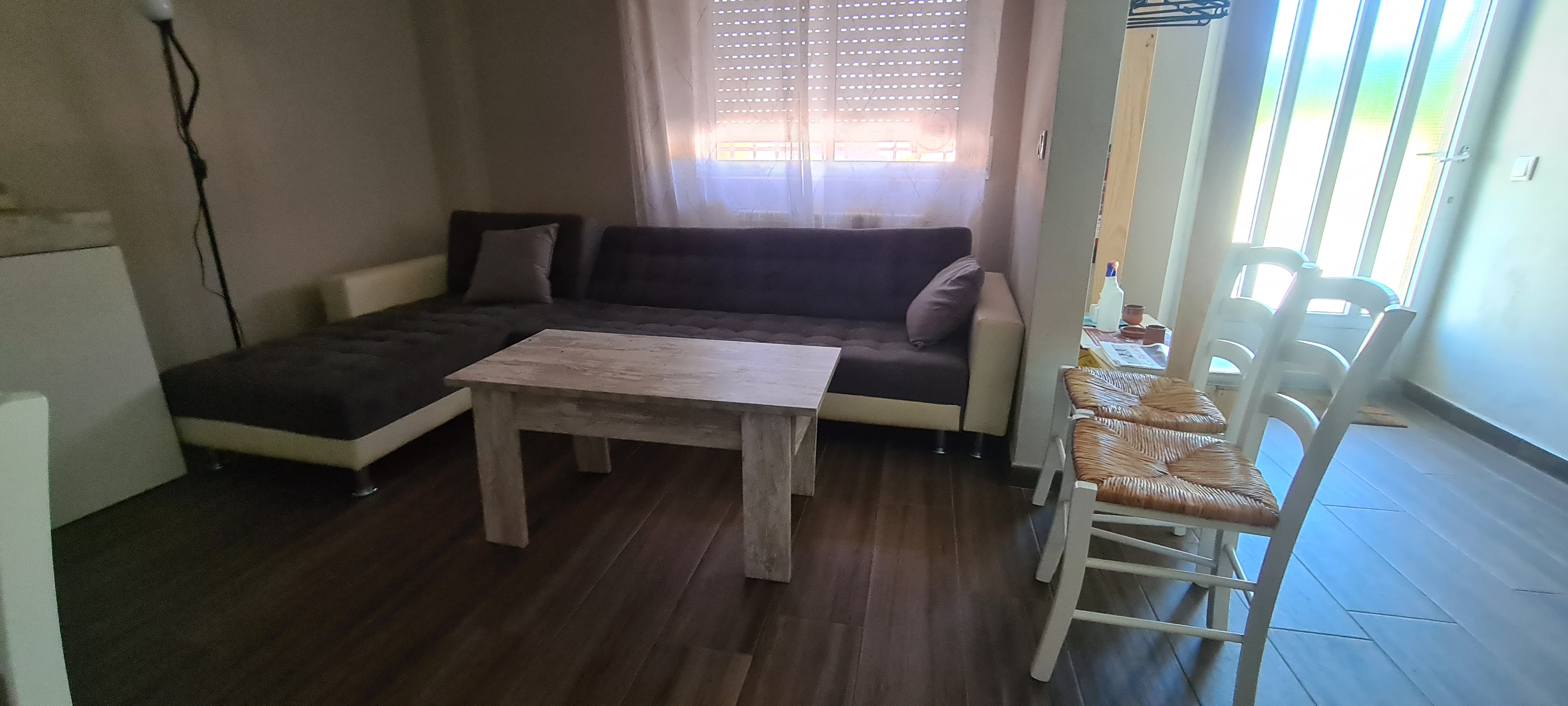 La casa, está en un pequeño bloque en la calle que sube a la iglesia. Tenemos una habitación en la parte de arriba, compartimos la cocina con otro huésped, con el que apenas coincidimos.