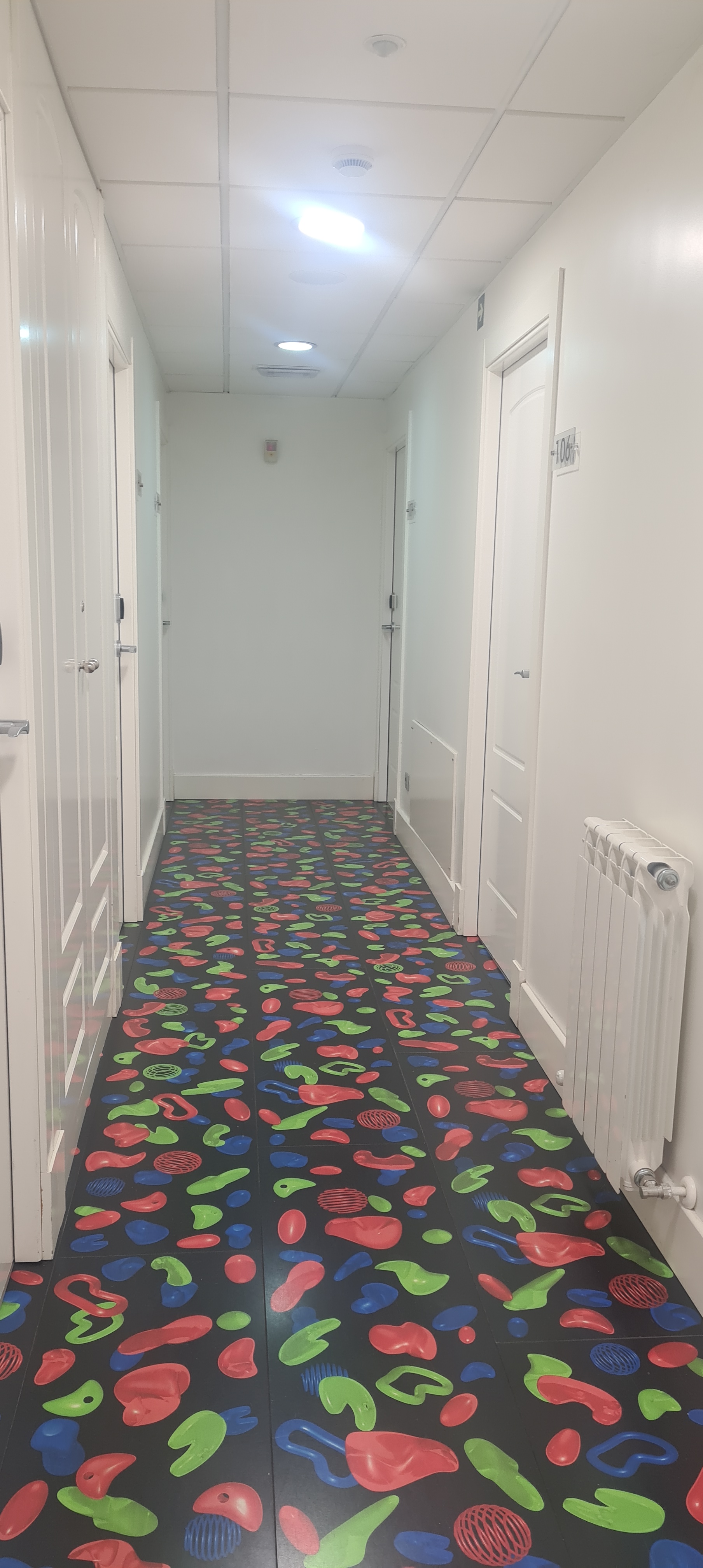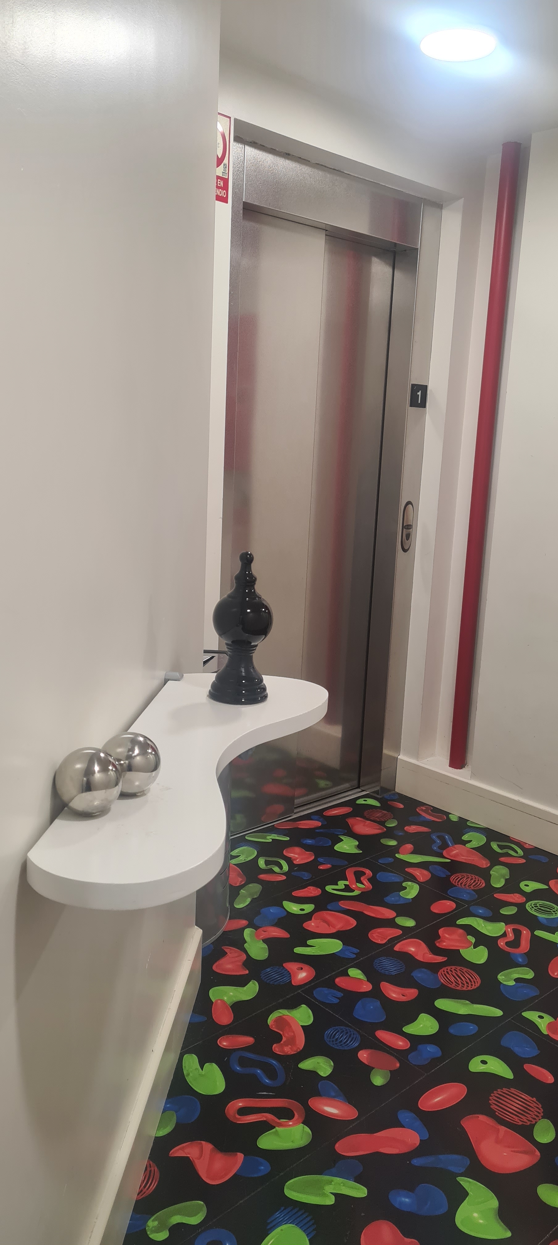 En la primera planta, justo en la planta donde está el salón del desayuno hay una pieza que se llama: Escultura deslizante para humanos atrevidos.