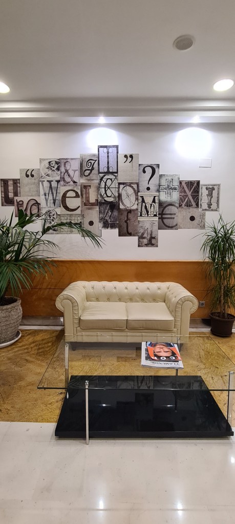 En nuestro viaje a la ciudad de Málaga tuvimos la suerte de dormir en un Hotel que es un Museo de Arte Contemporáneo a pequeña escala. Hotel Barceló Málaga.