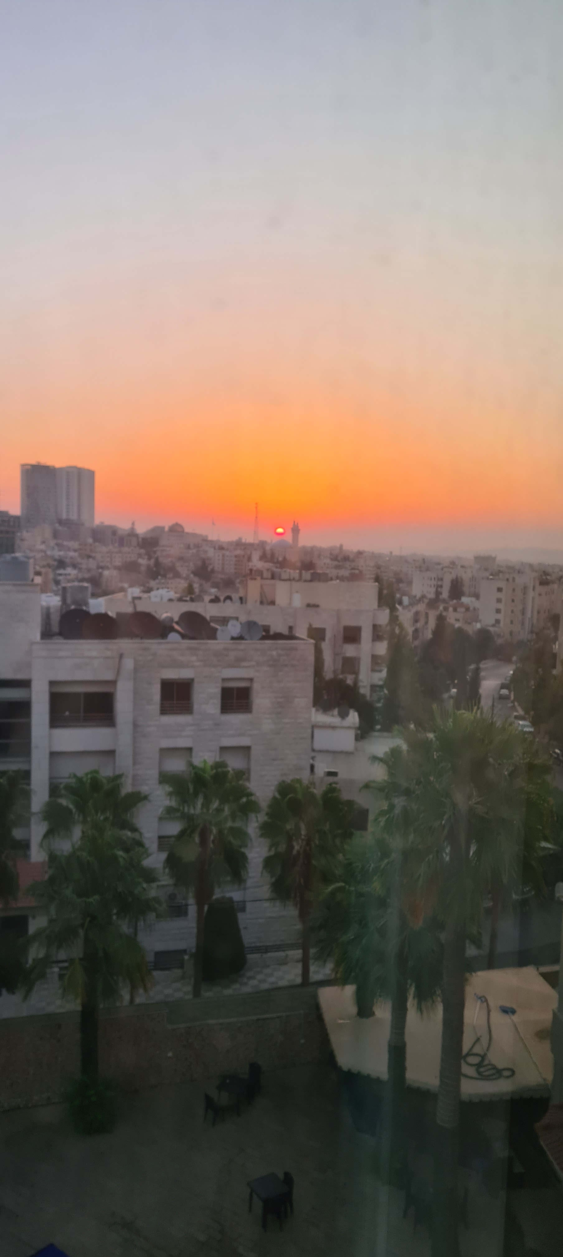 En la habitación hay aire acondicionado, tele (poco la vimos, no hay canales internacionales, tampoco es necesario). Vistas a la enorme ciudad de Amman. Una entrada muy espaciosa con sillón, sofá, mesa con sillas, hervidor de agua con infusiones, nevera que llenamos de botellas de agua, una cama de matrimonio y una cama supletoria para Pablo. La habitación muy espaciosa, (importante para dejar maletas).