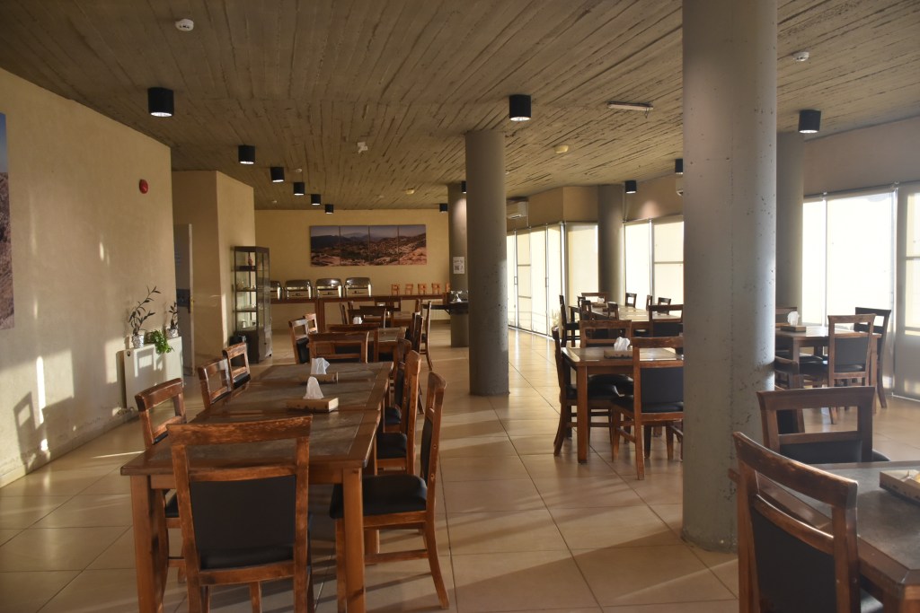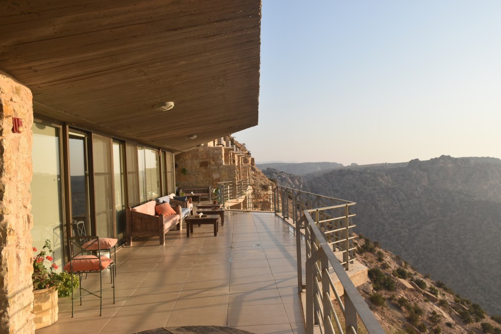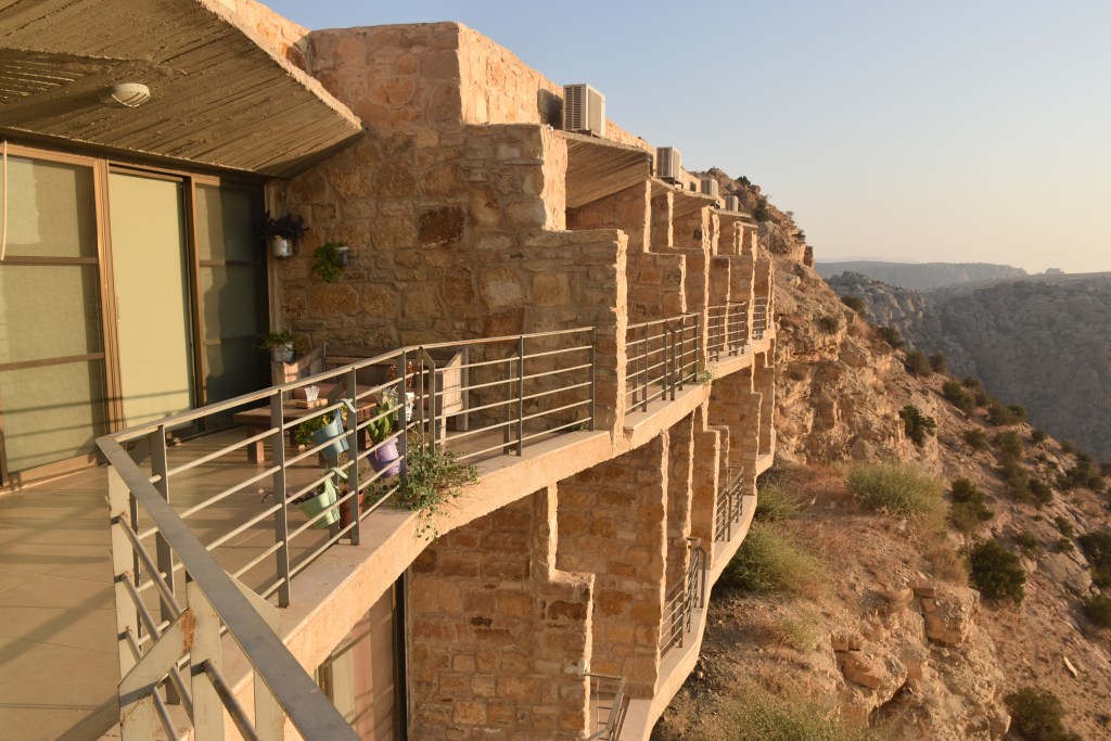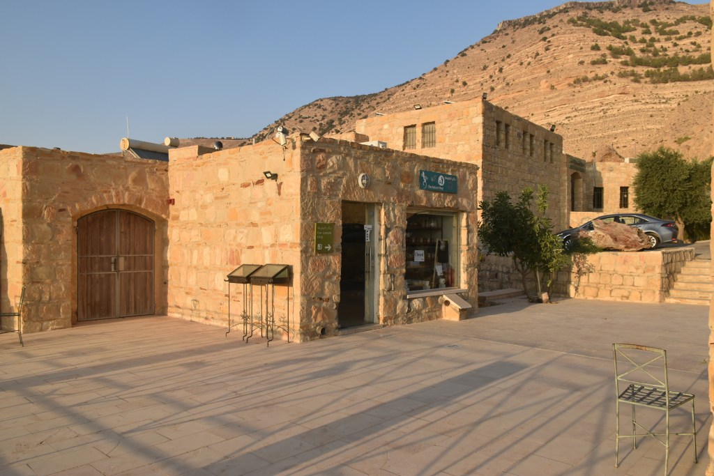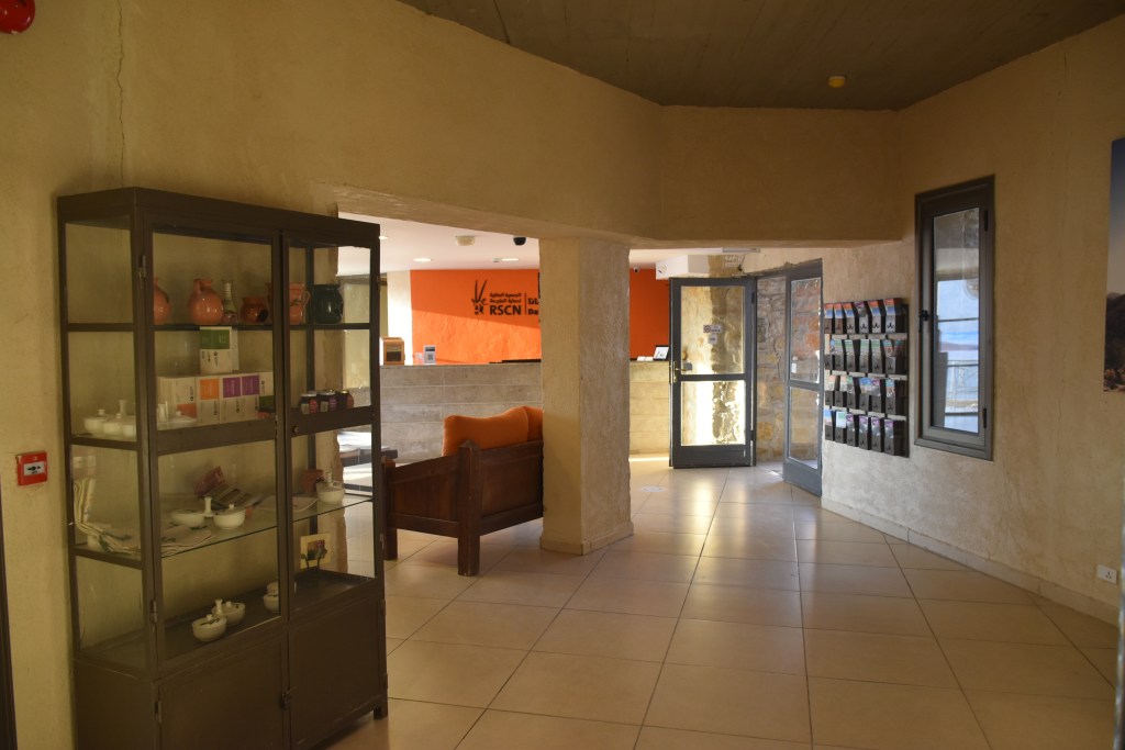 El hotel tiene Wi-fi en las zonas comunes, una terraza con vistas a la Reserva, tienda de productos locales e información sobre la Reserva Natural. Aquí teníamos incluida la cena en el comedor, comida muy sencilla jordana y muy rica. El desayuno del día siguiente también, pero nos preparan picnic para llevar porque la ruta la empezamos antes de que abra el comedor.