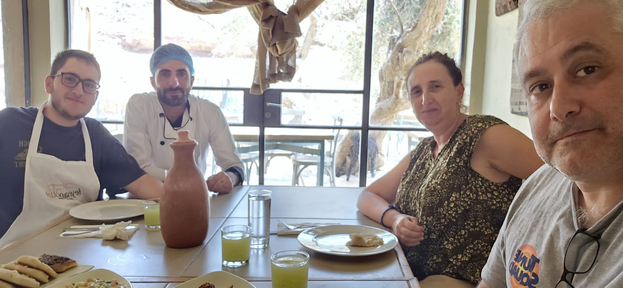Casi todo lo que prepararon fue nuestra comida después, había cosas riquísimas, en este viaje estamos comiendo falafel exquisito y el pan con aceitunas y aceite ¡ummm!..