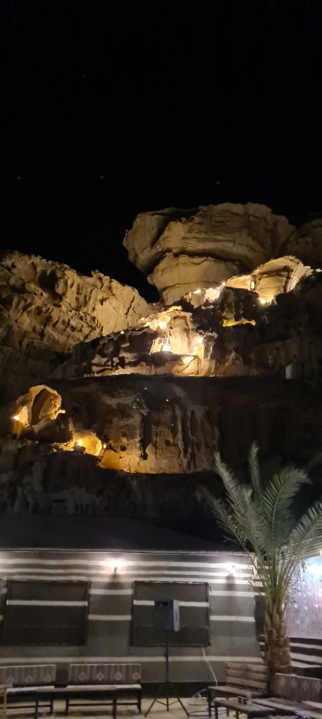 En el hotel – campamento no se ve el cielo por la noche, tienes que salir de esa zona y solo se puede ver si te adentras un poco en el desierto (o si duermes en la esfera). Solo se podía ir si cogías la excursión y en ese momento valoramos que lo que ya habíamos vivido en Feynan hacía solo unos días o en la subida al Monte Sinaí el verano anterior no iba a mejorarse… Bueno valoramos no hacerlo.