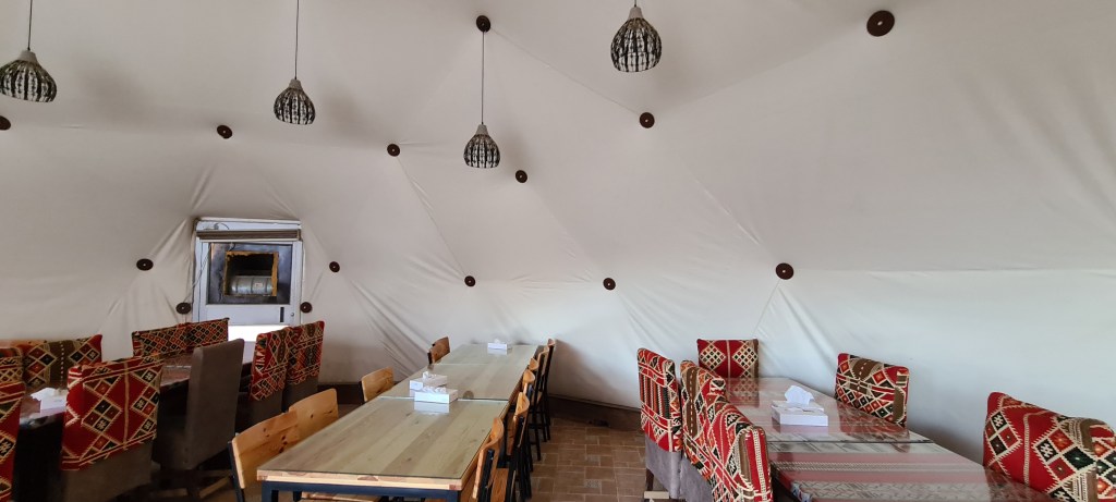 Nosotros elegimos la de tipo beduino, porque era más barata que la esfera y bueno, me quedé con las ganas de dormir en la esfera para poder ver el cielo que dicen que es increíble en Wadi Rum.