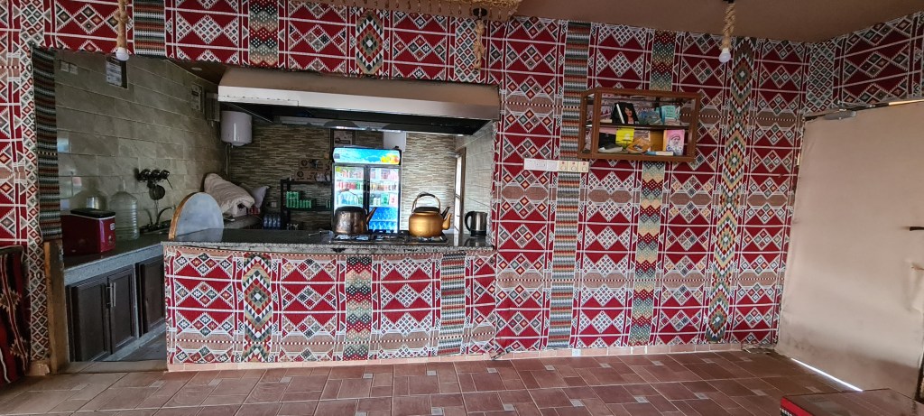 La tienda está decorada con alfombras típicas beduínas al igual que las colchas de las camas. Los enchufes estaban escondidos entre las alfombras de las paredes.