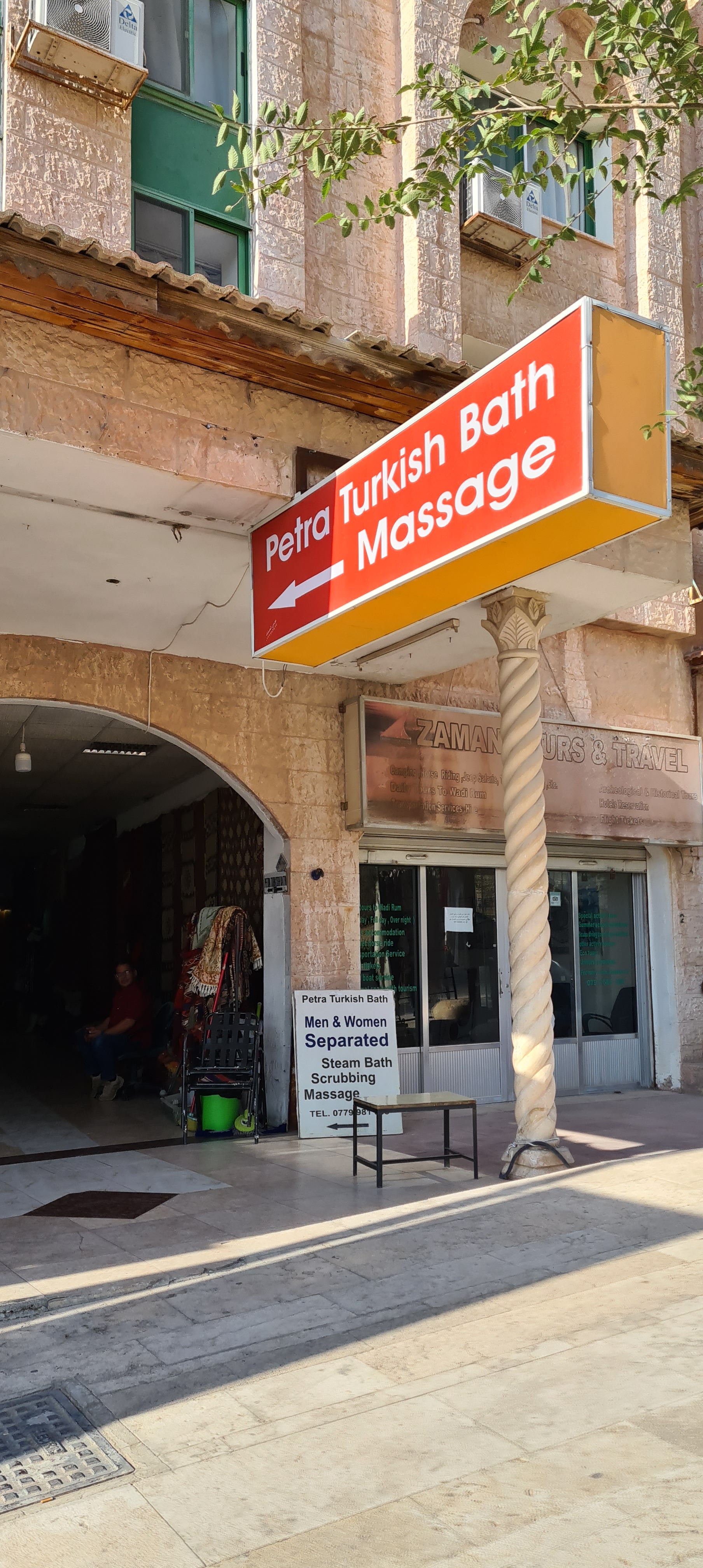 Tengo que contar mi experiencia, que no fue del todo agradable. Es un baño que utilizan los jordanos, por eso hombres y mujeres entran en baños diferentes. Allí se marcan bastantes diferencias entre las zonas masculinas y femeninas, no digo vestuarios, todo es diferente. El de los hombres está en la planta baja y todo parece más bonito, (a los chicos les encantó). El de las chicas está en la planta de arriba, las chicas que dan los masajes están sentadas en unos sillones con poca luz, unas taquillas en unos vestuarios poco cuidados. El baño de azulejos blancos con una ventana que da a un patio interior. Es una sensación extraña, no demasiado agradable. Aunque tengo que reconocer que luego mi espalda estuvo fenomenal.