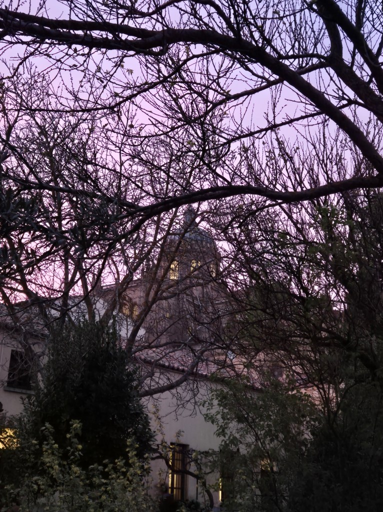 Podríamos quedarnos dormidos perfectamente en los colchones de la azotea, pero bajamos a nuestra habitación, velas en los peldaños de la escalera, en los pasillos, en las ventanas, es todo como en un sueño…