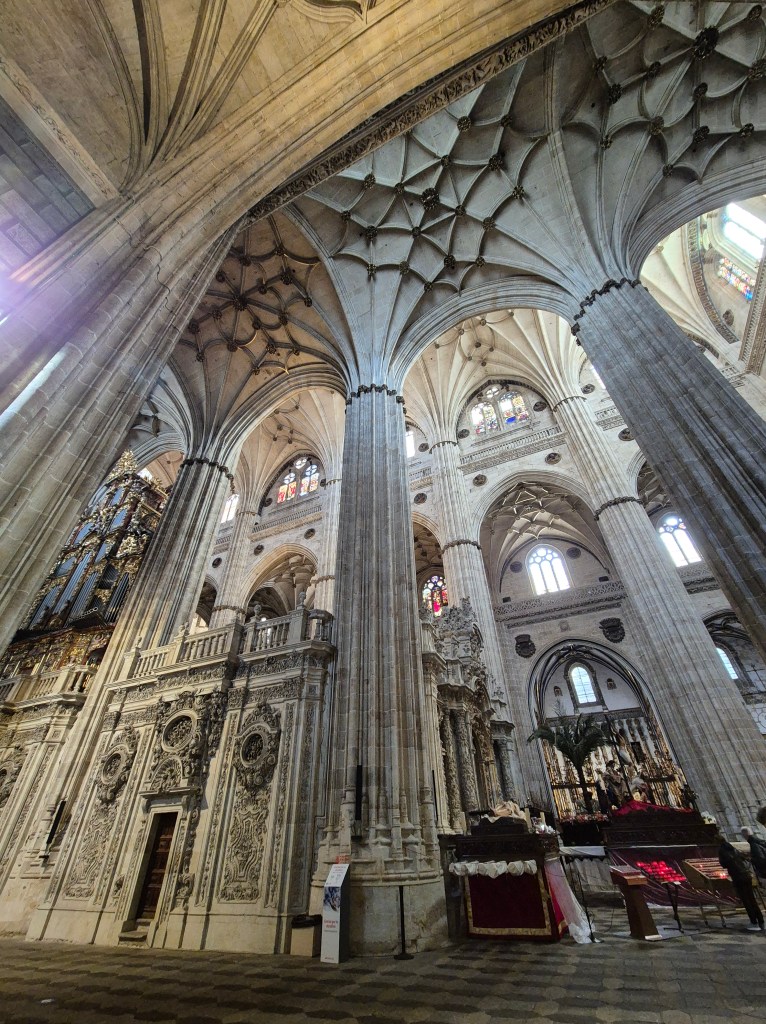Salimos tan maravillados que nos fuimos a la Catedral Nueva y Vieja de Salamanca.