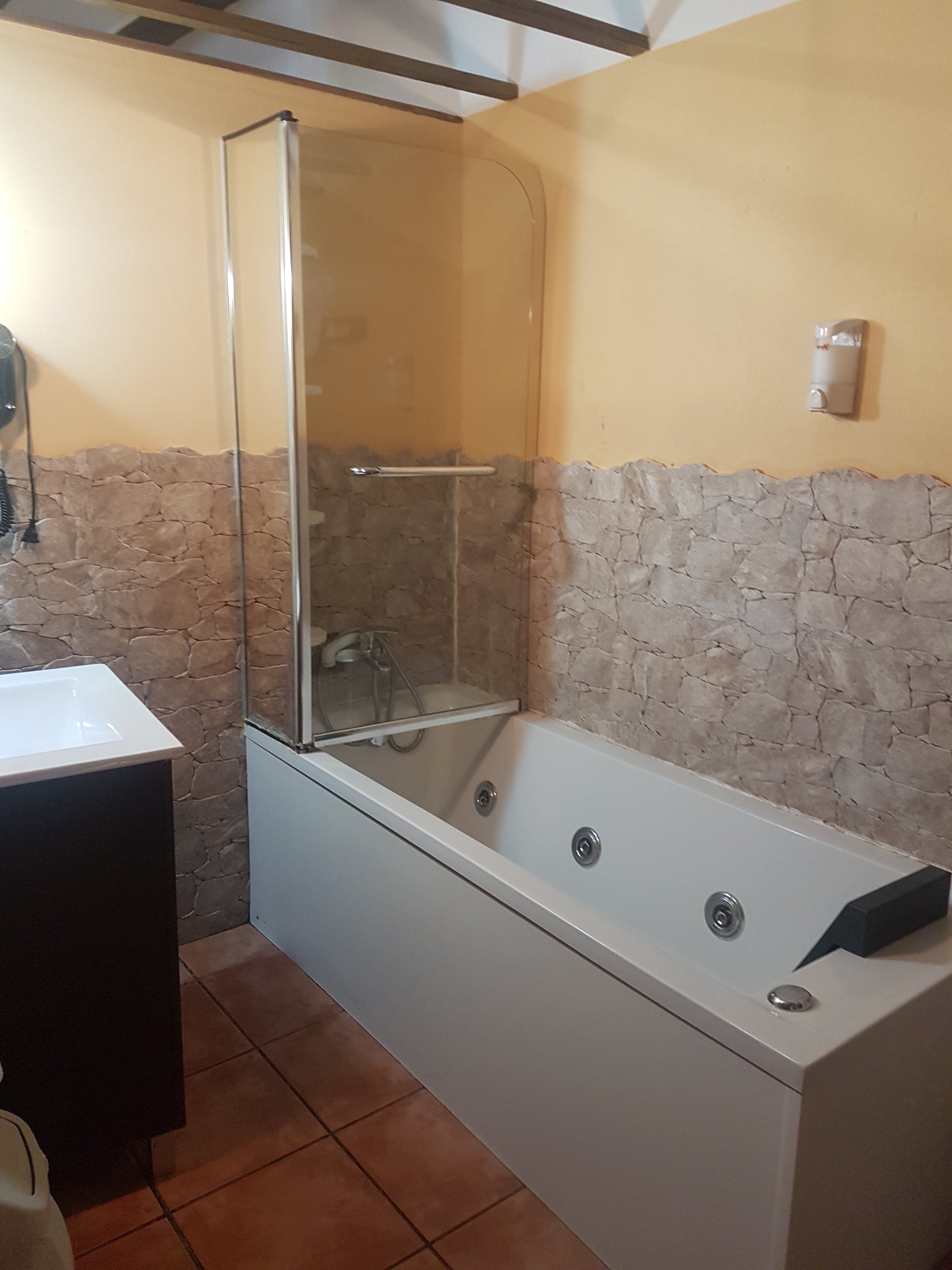 Hostal Suetxe en Los Arcos. Hotel rural con encanto, rustico, pero muy confortable. La verdad es que nos gustó mucho.