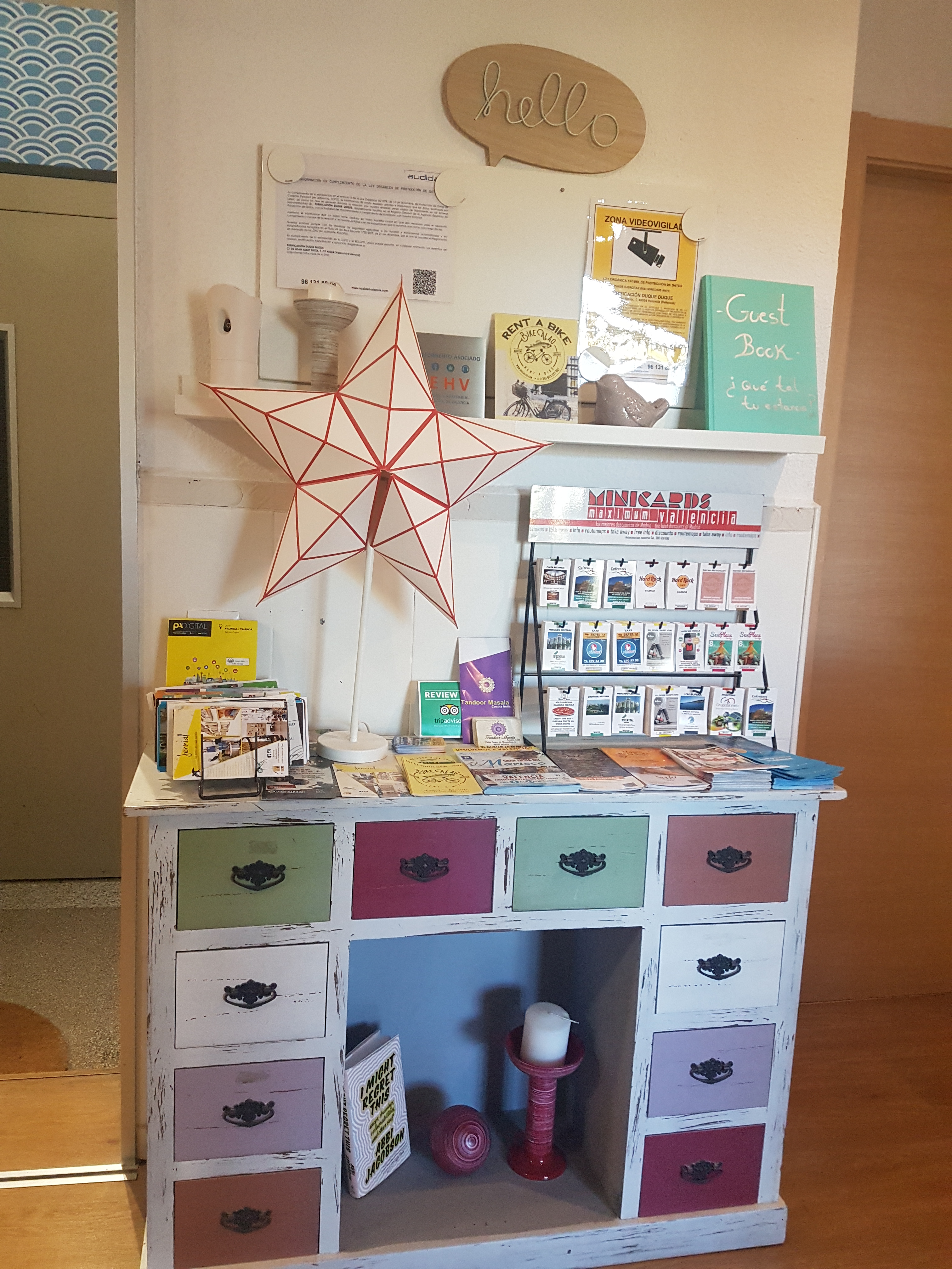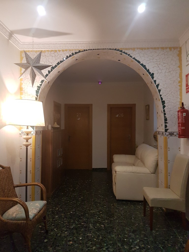 La recepción del Hostal está en la planta 1, llegamos pronto y no tenemos la habitación disponible, pero si podemos dejar los mini equipajes para una noche.
