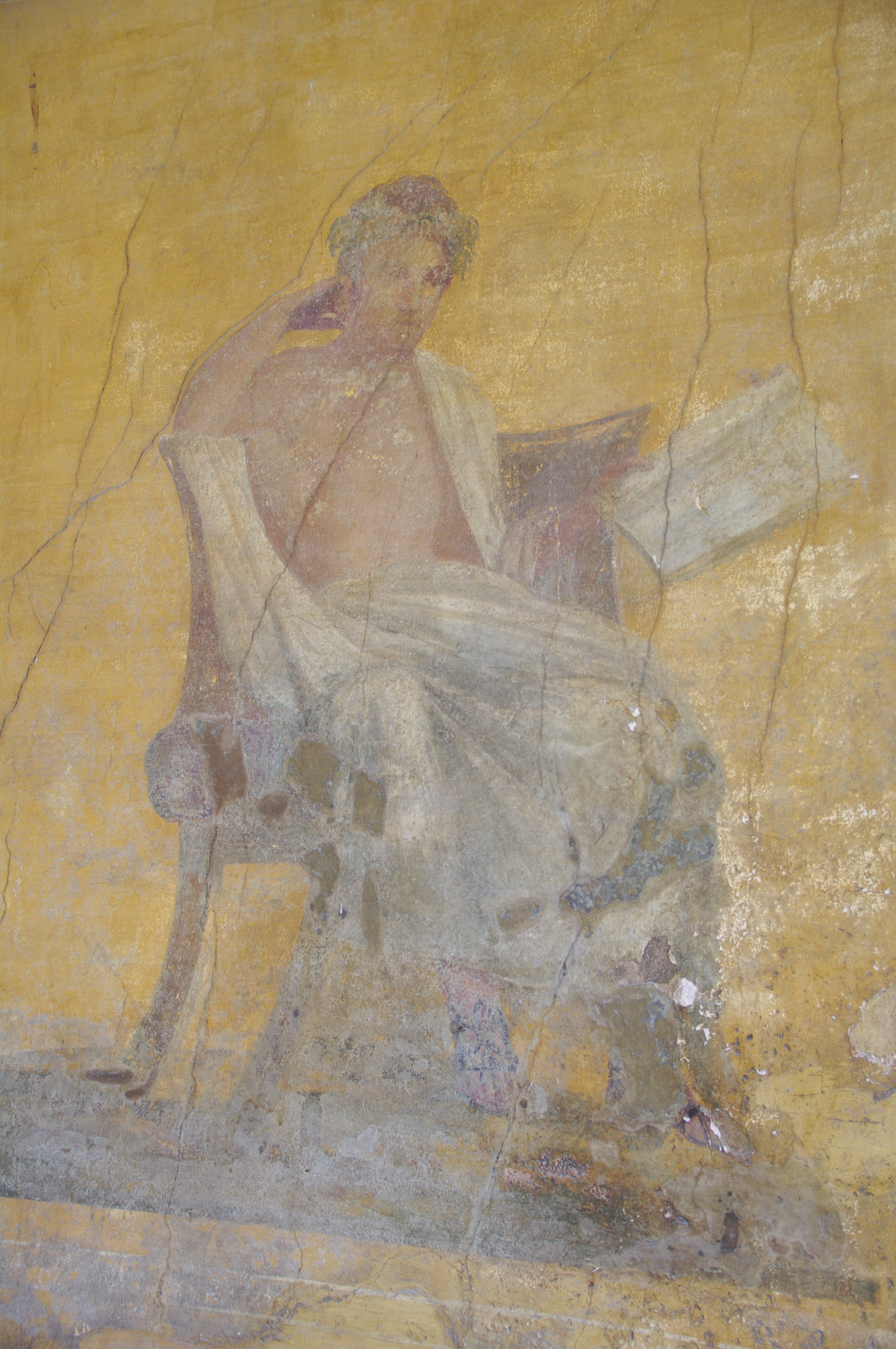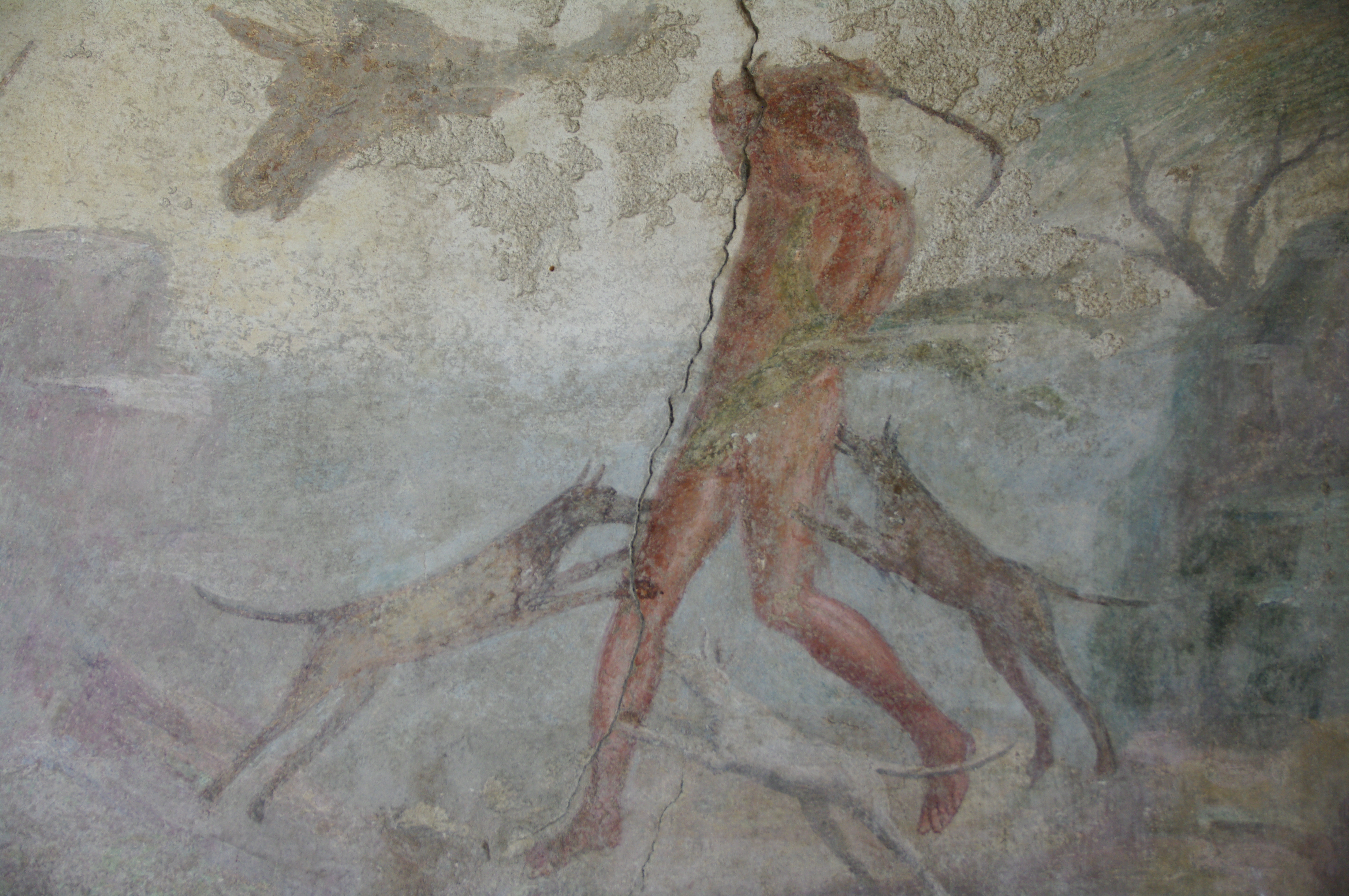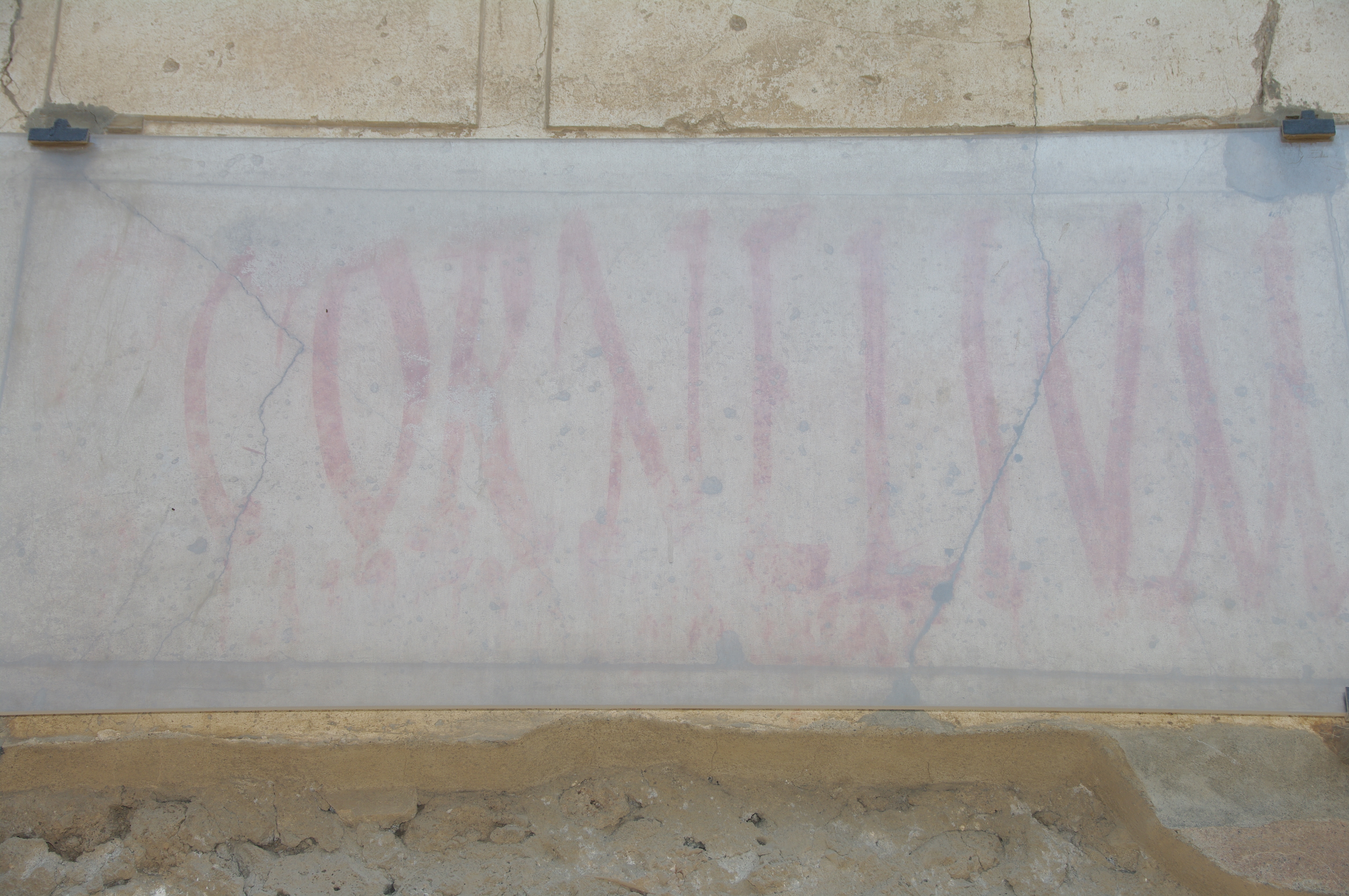 Quedan restos de una primera versión que se pueden ver en la figura, un brazo de Cristo a la izquierda y una parte de la cara de María a la derecha.