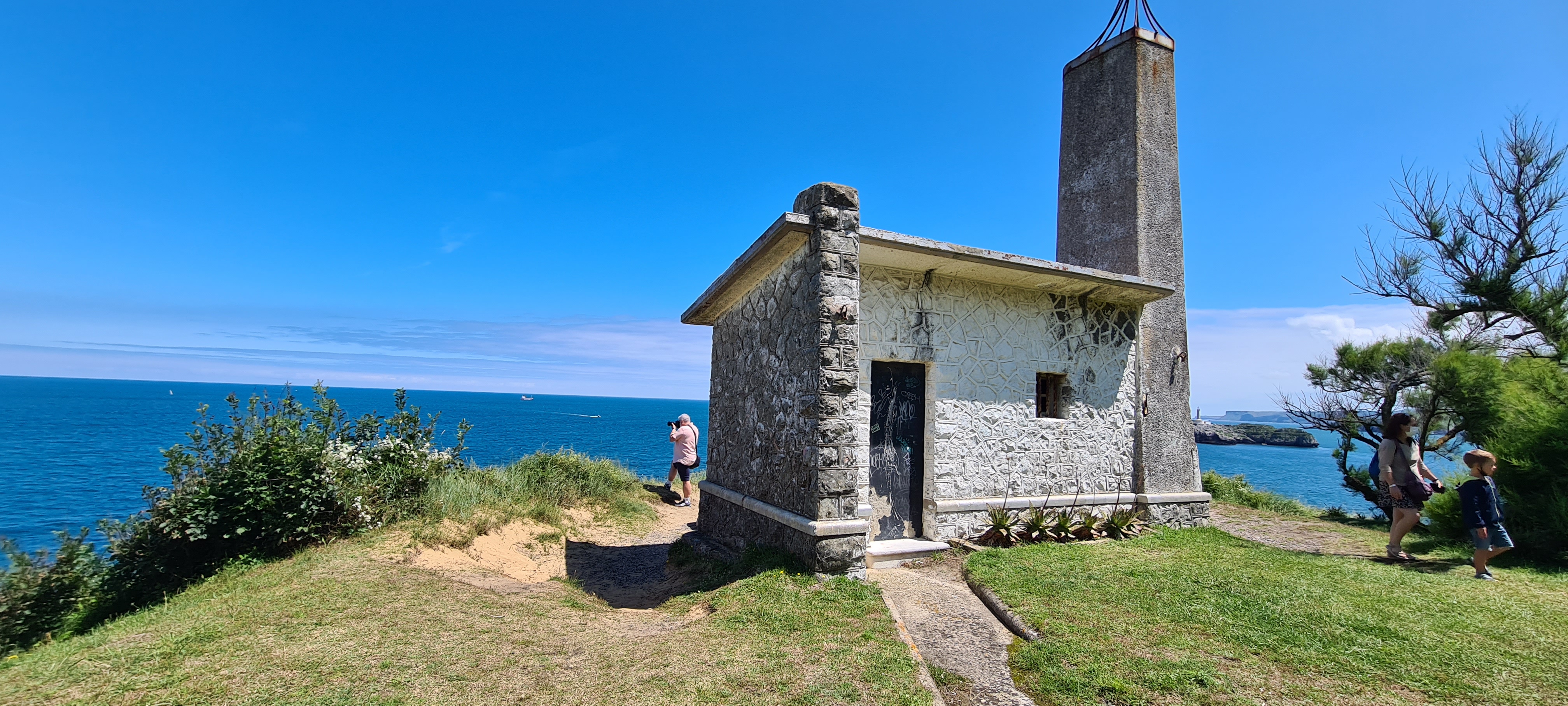 Una pequeña ermita justo enfrente de la entrada principal al palacio, mira a los acantilados de la bahía, a la isla de Mouro y a la playa del Sardinero.