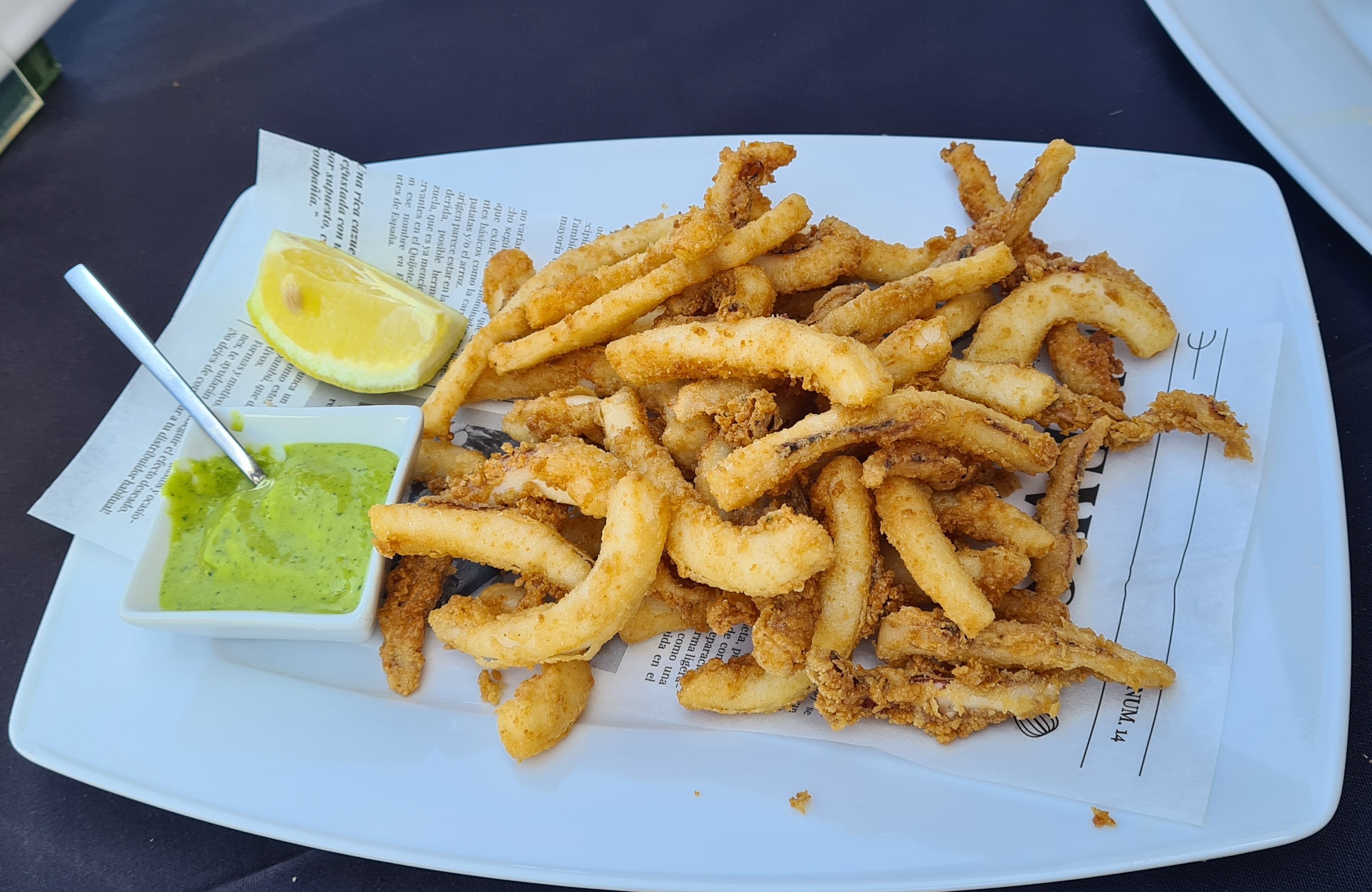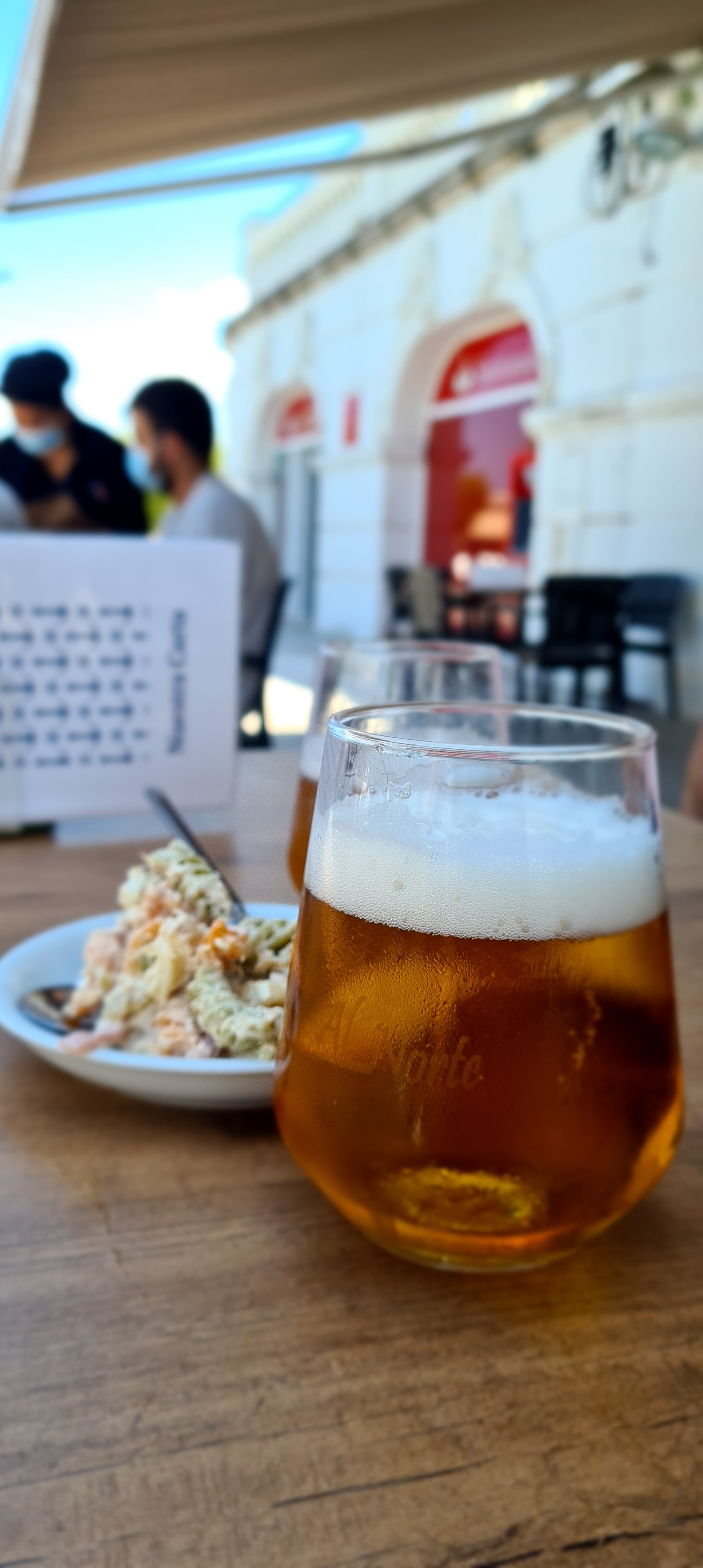 Solo pudimos tomarnos algo, porque tenían todo reservado para las cenas. Así que nos dimos un paseo de media hora desde Puerto Chico para una cerveza, ver el barrio, y regresar.